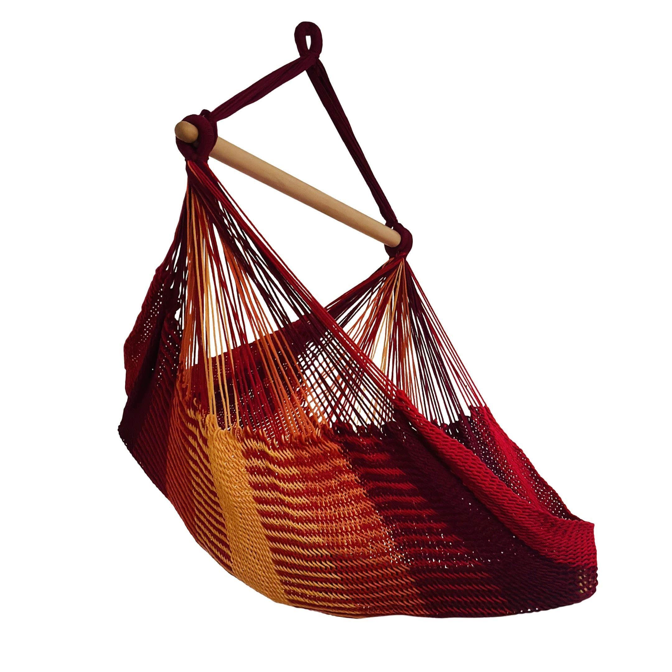 Dieser Netzhängesessel ist besonders robust und reißfest. Die extra dicken Baumwollschnüre sind zu einem dichten Netz verarbeitet und bieten Stabilität für den Rücken. Lehnen Sie sich zurück und entspannen Sie. Die Sitzfläche ist dicht wie Stoff und doch ein flexibles Netz. Das Netz ist angenehm luf