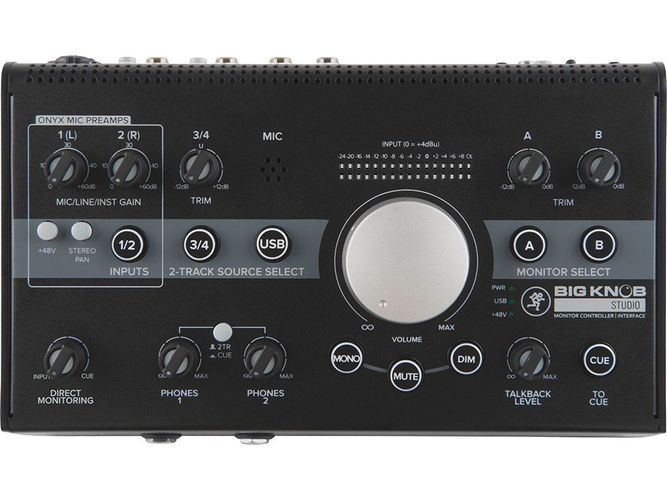 Mackie Big Knob Studio Mackies Big Knob Studio vereint erstklassige Onyx PreAmps und 96-kHz 24-bit Wandler mit der flexiblen Quellenauswahl sowie der Monitorumschaltung des bekannten Originals. Mit smarten Features wie dem eingebauten Talkback und dem zusätzlichen Eingang für Smartphones ist das Big