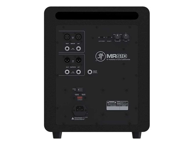 Mackie MRS10 10' aktiver Studio Subwoofer druckvoller und tief reichender Studio Subwoofer reproduziert schnell und akkurat tiefe Frequenzen 120 Watt Class A B 28 - 180 Hz Frequenzgang 10' Woofer aus Glas-Aramid Verbundswerkstoff Bass-Reflex System erweitert den tieffrequenten Bereich Stereo XLR und