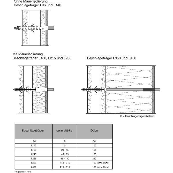 Maco #40227 Rustico Beschlägeträger Größe L180 für Ladenhalter ohne Dübel schwarz