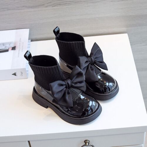 Madchen Kinder Hochzeit Schule Warme Ankle Boots Spainsh Bow Leder Flache Schuhe