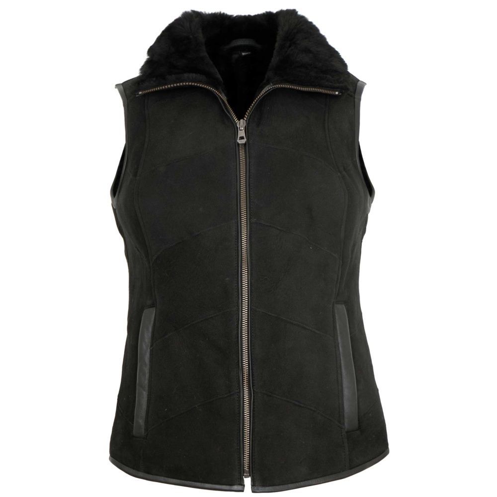MADDOX - Damen Lammfellweste Lederweste Lammfell schwarz
