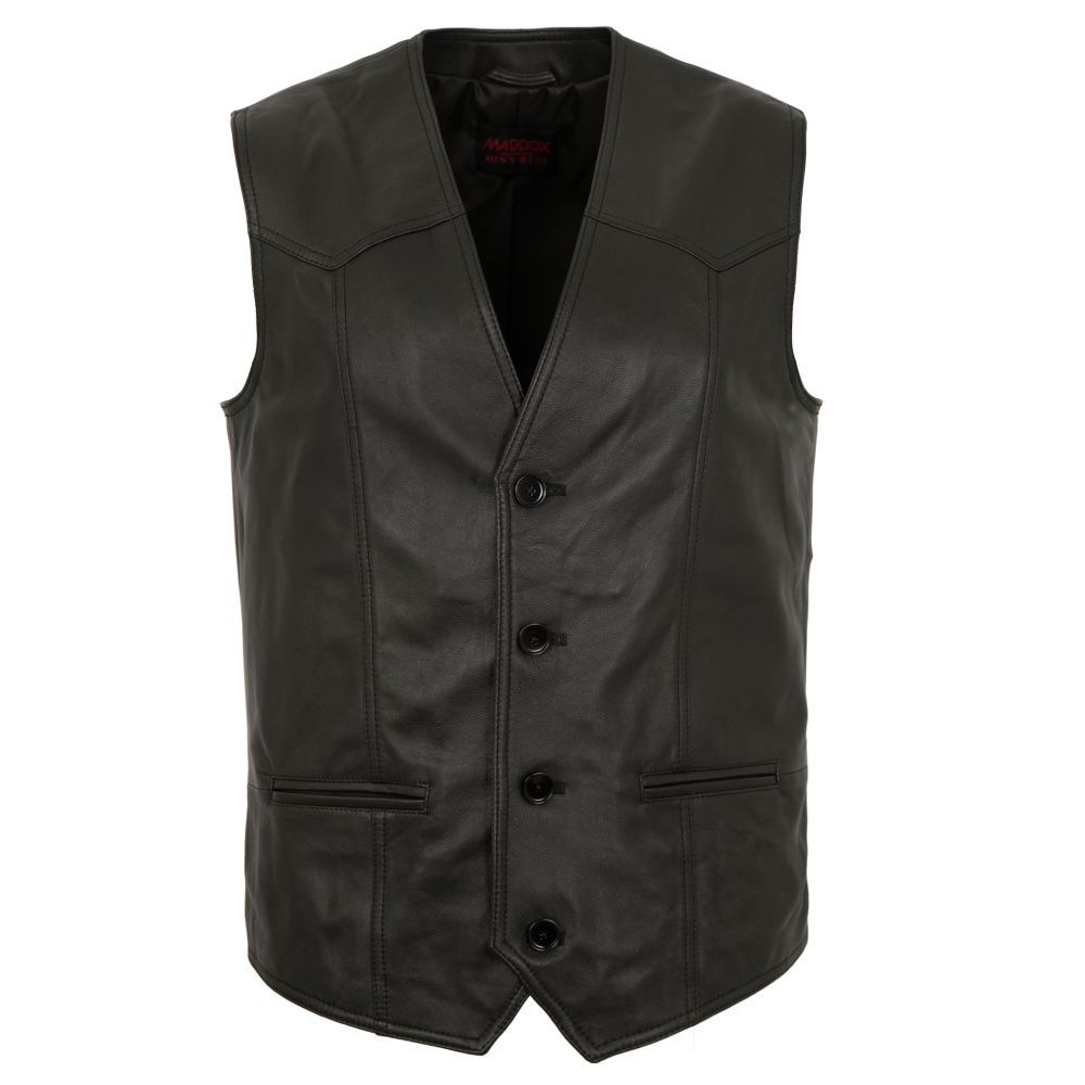 Maddox - Herren Echtleder Lederweste Lammnappa schwarz