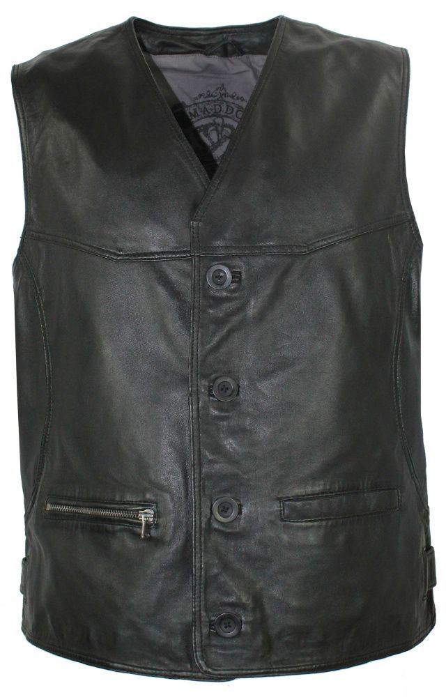 Maddox - Herren Lederweste Lammnappa schwarz