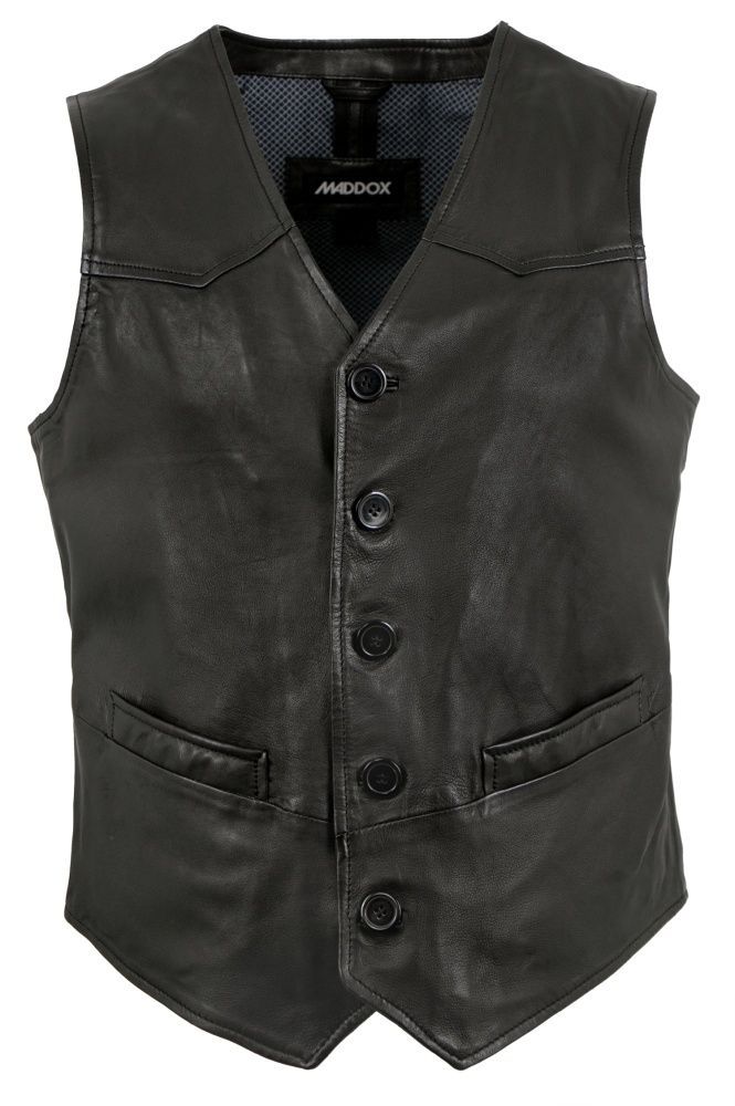 MADDOX - Herren Lederweste Lammnappa schwarz