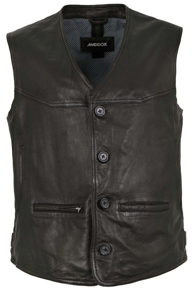 MADDOX - Herren Lederweste Lammnappa schwarz