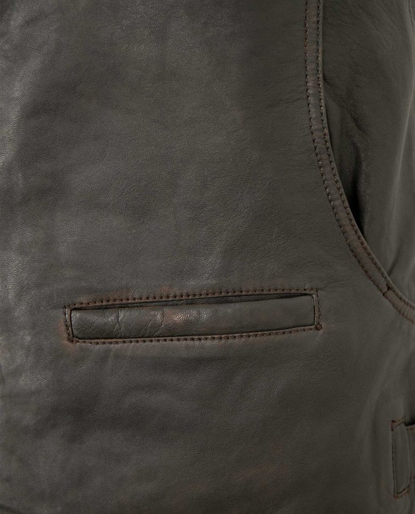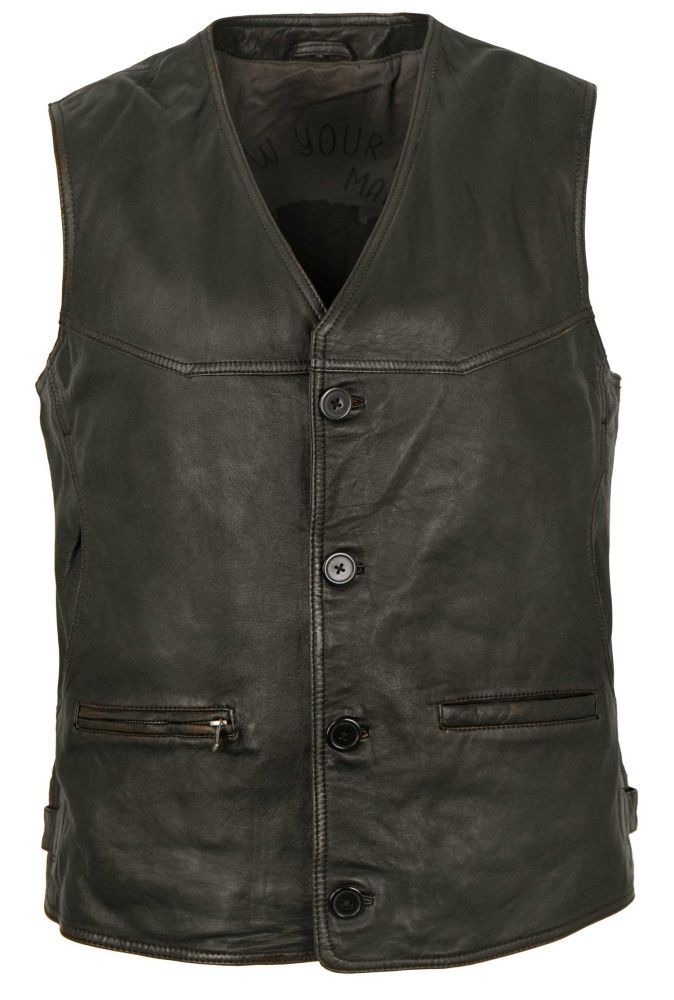 MADDOX - Herren Lederweste Lammnappa schwarz-beige antik