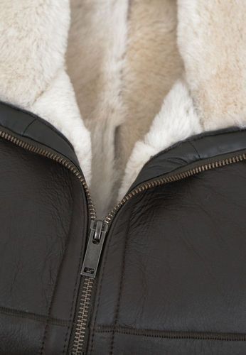 Maddox - Herren Lederweste Lammnubuk Lammfell dunkelbraun-beige