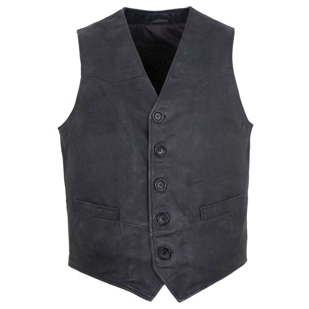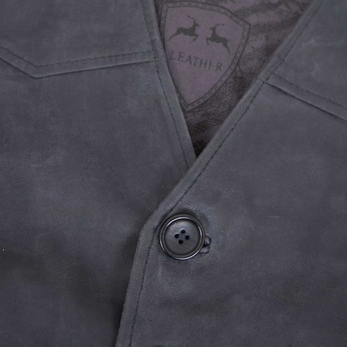 MADDOX - Herren Lederweste Lammnubuk navy