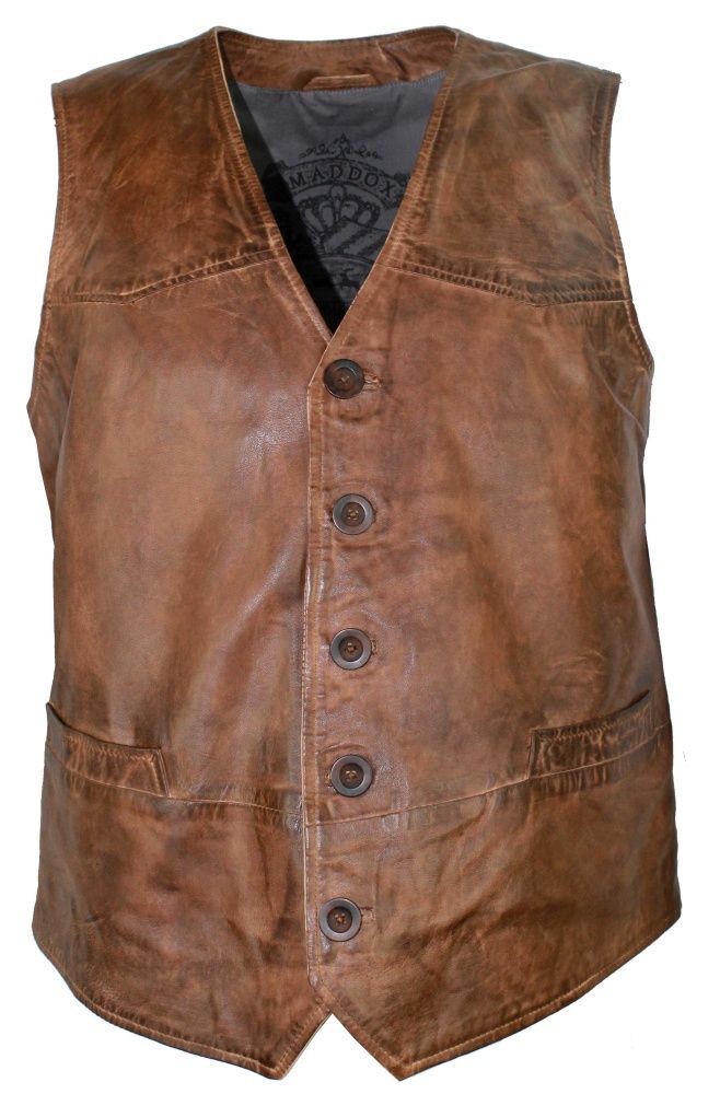 Maddox - Herren Lederweste Weste Lammnappa whisky cognac
