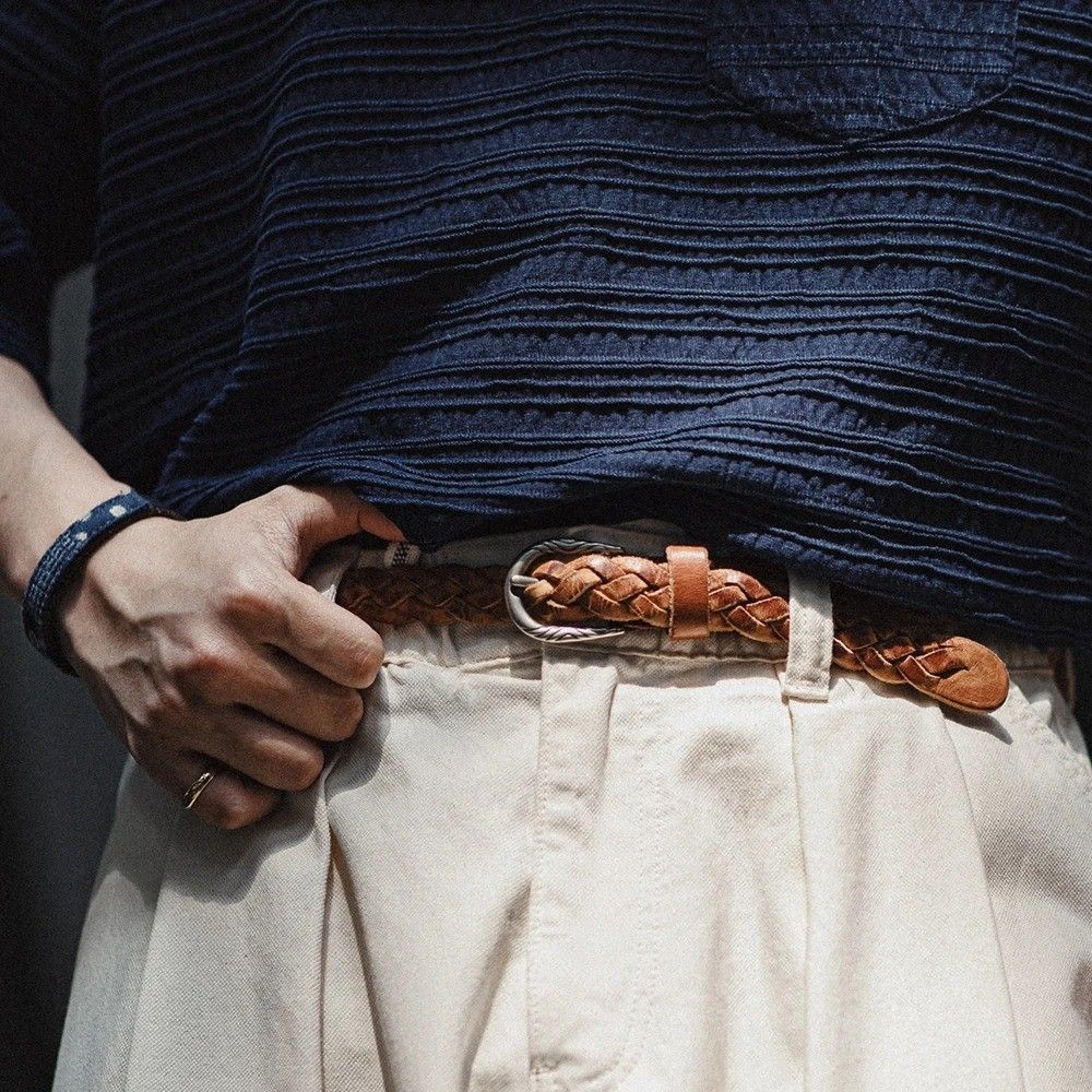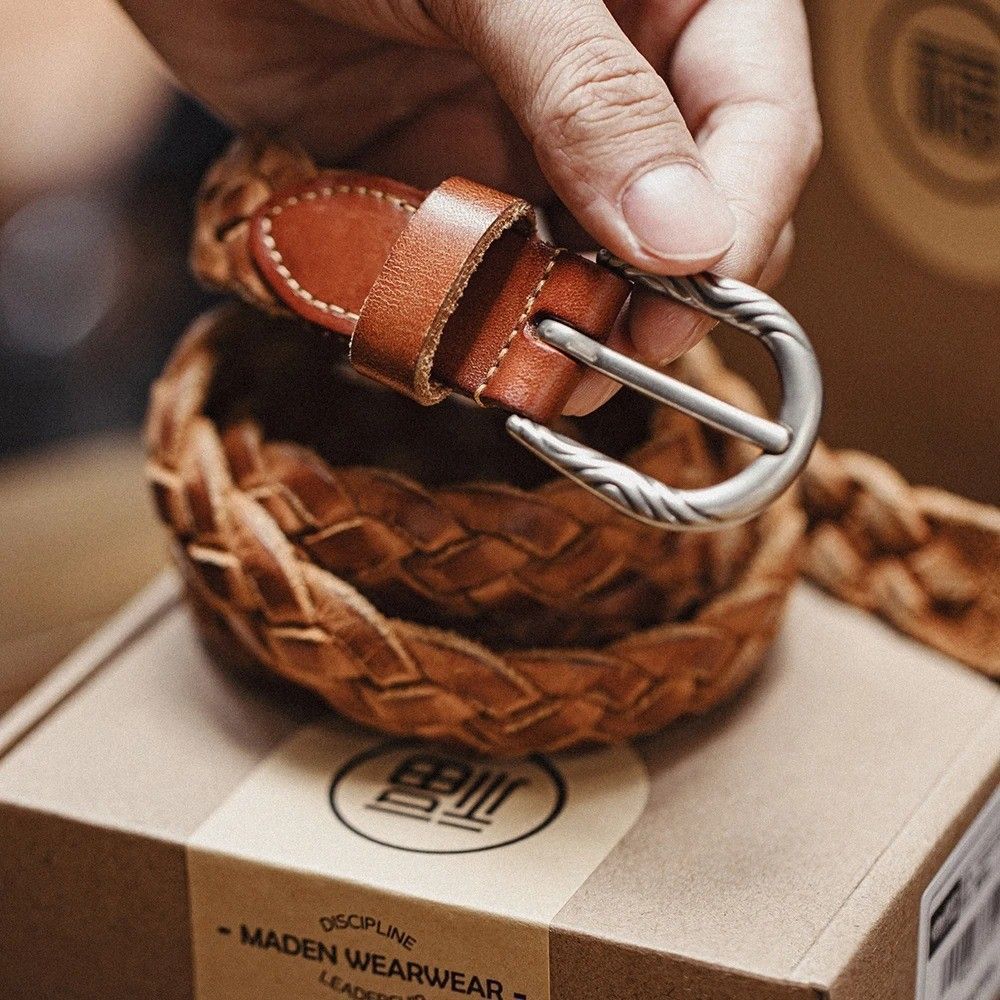 Maden Vintage Woven Vegetable Tanned Cowhide Leather Belt, Two-Layer for Men, Versati