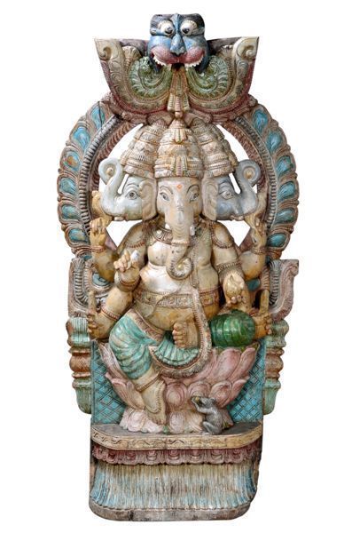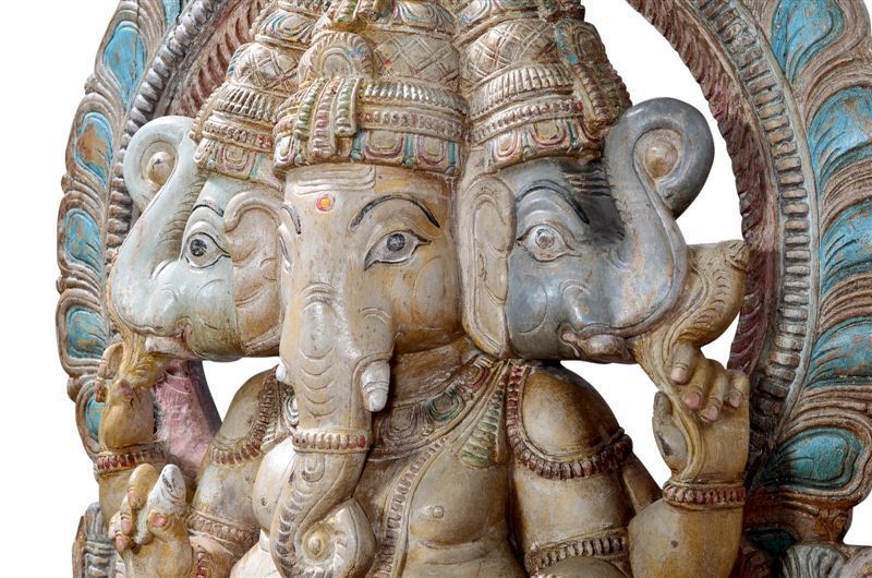 Maechtige hoelzerne Skulptur grossartiges Bildnis des Elefantengotts G