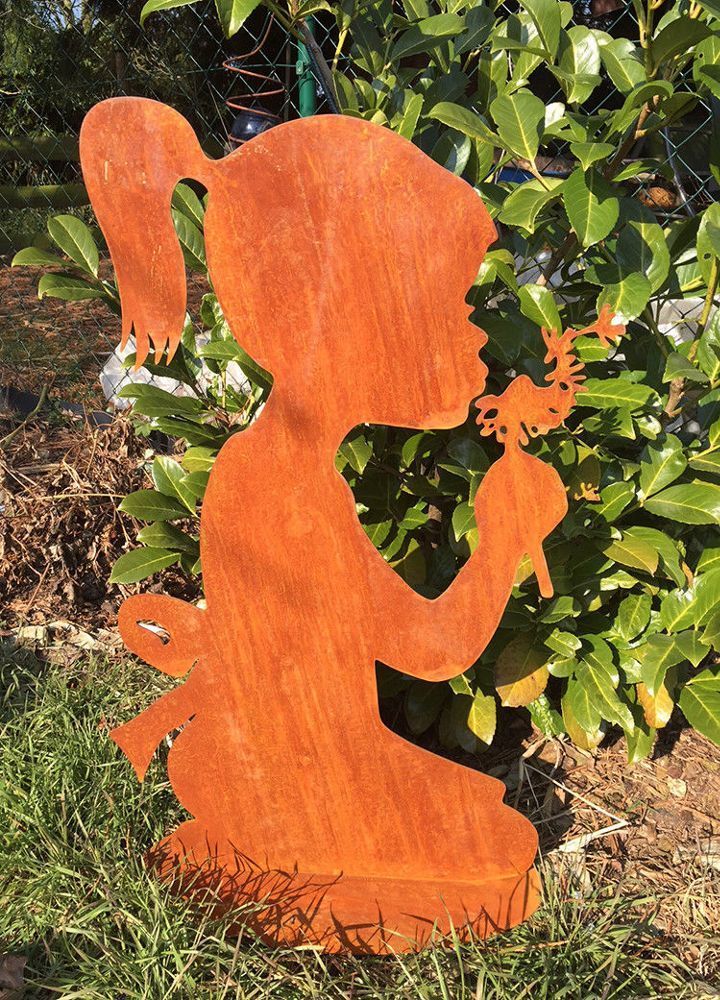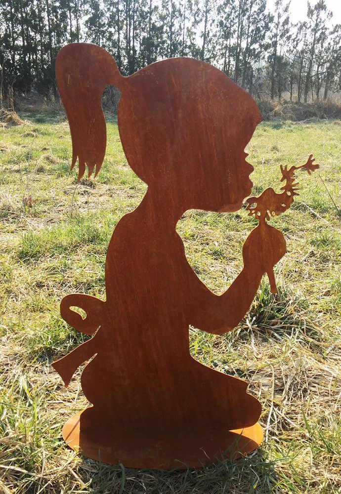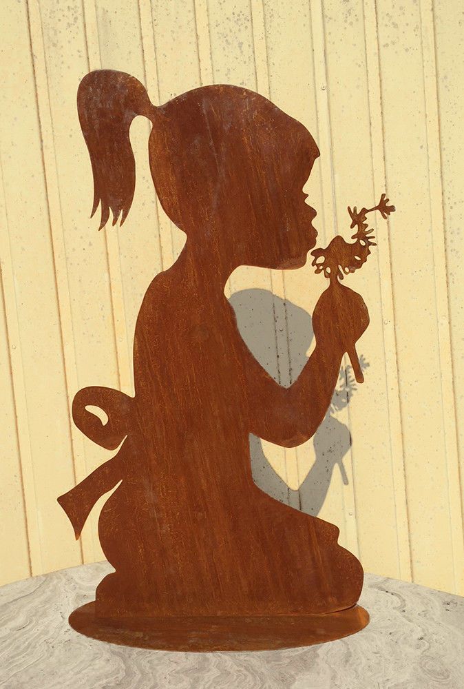 Mädchen mit Pusteblume 60cm Rost Edelrost Menschen Kind Metall Rostfigur Garten