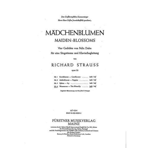 Mädchenblumen op. 22/4 (Strauss) - Singstimme (hoch) und Klavier Noten (PoD)