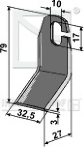 Mähmesser abgewinkelt 63-AMA-59 passend für Amazone Mulcher Technische Datem: Best.-Nr. 63-AMA-59 Orig.-Nr. 1205200 Gewicht 0,055 kg Dicke 3 mm Länge 79 mm Breite 32.5 mm Bohrung Aufhängung 10X17 mm Länge Winkel 27 mm Artikel passend für Fabrikat: Amazone GH02; GHL02; GHLT02 Obenstehende Original Er