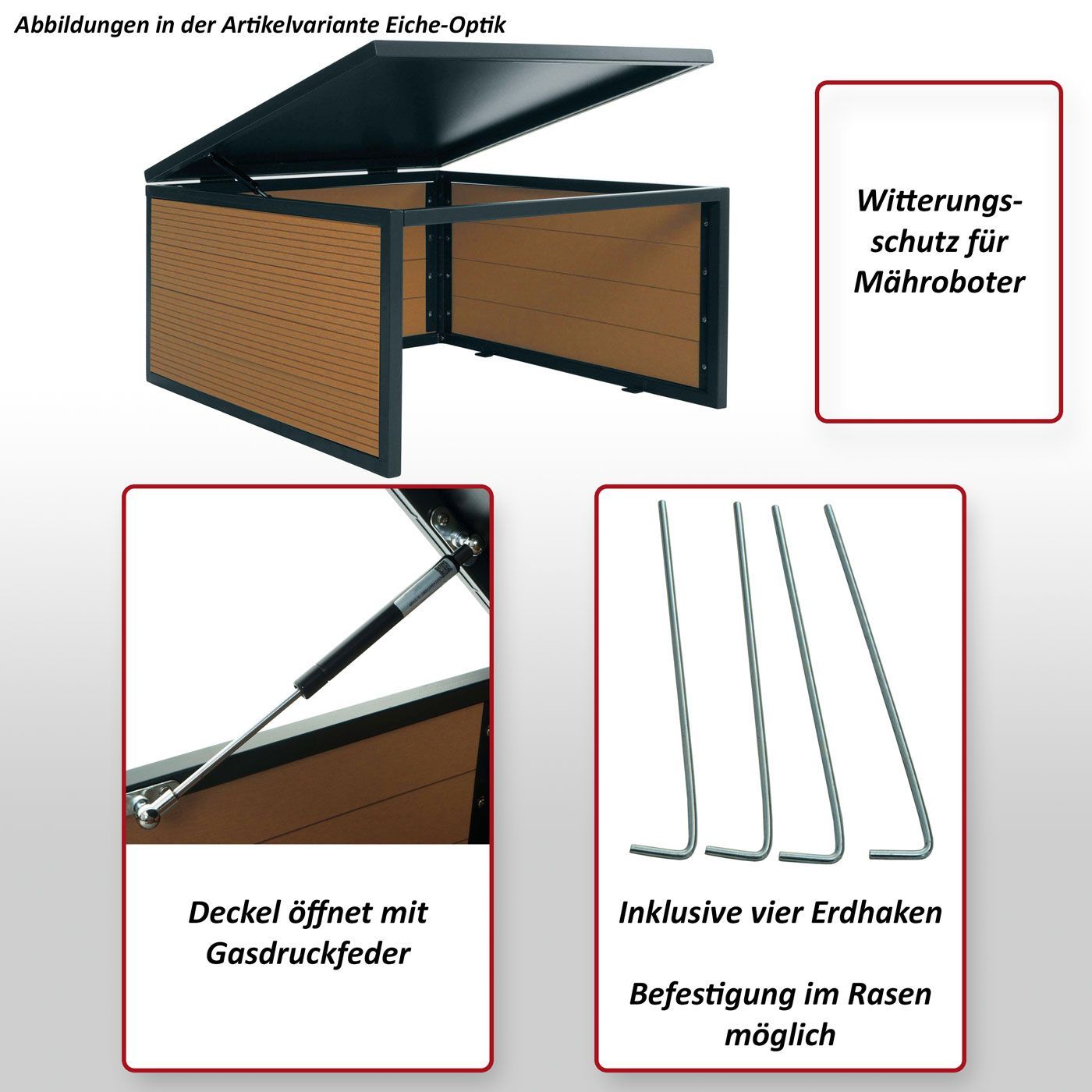 Mendler Mähroboter-Garage mit Deckel HWC-L45, Dach Unterstand für Rasenmäher, WPC Metall