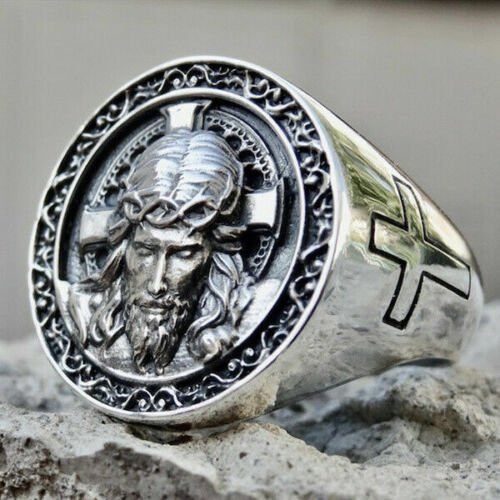 Brandneuer superstarker Jesus Ring Ein absolutes Hingucker Stück Fashion Style Handmade Men Vintage Edelstahl