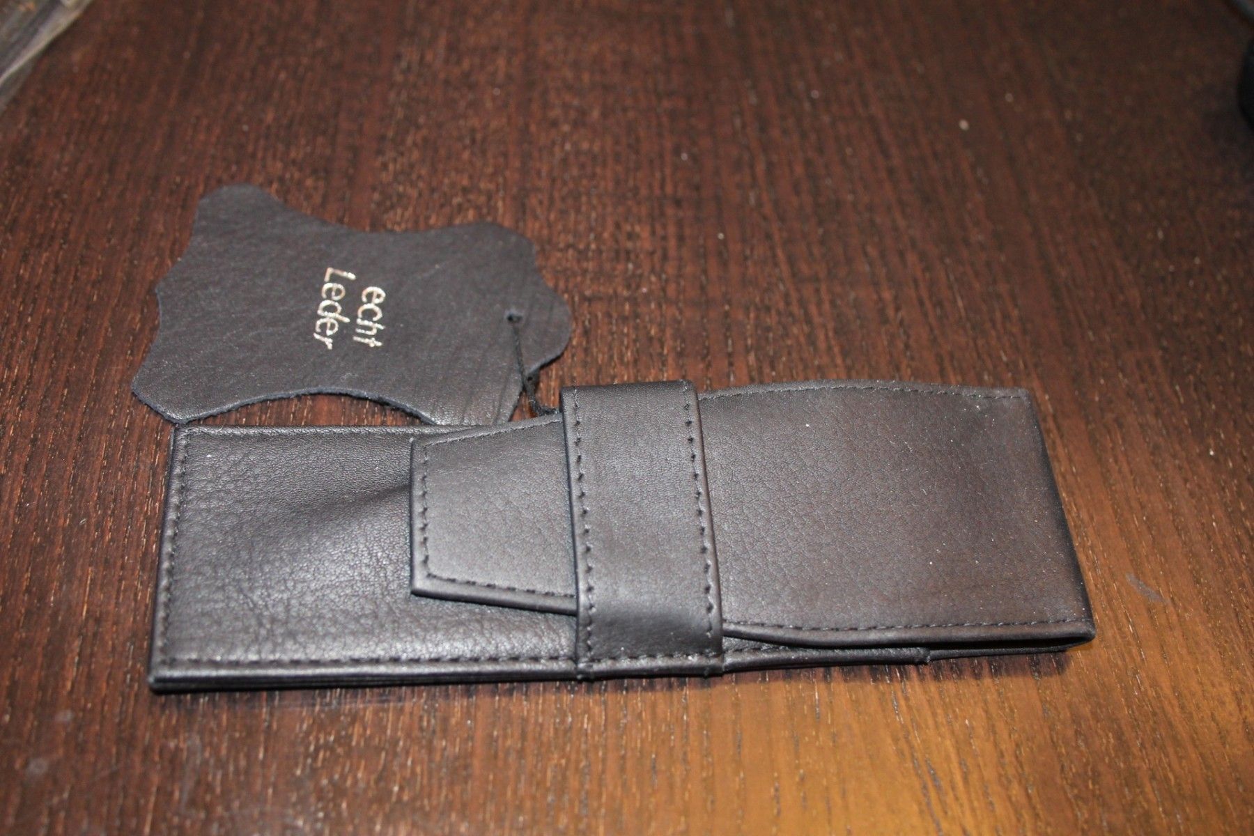 Material Leder. Keine Kennung auf dem Etui. Universell verwendbar.