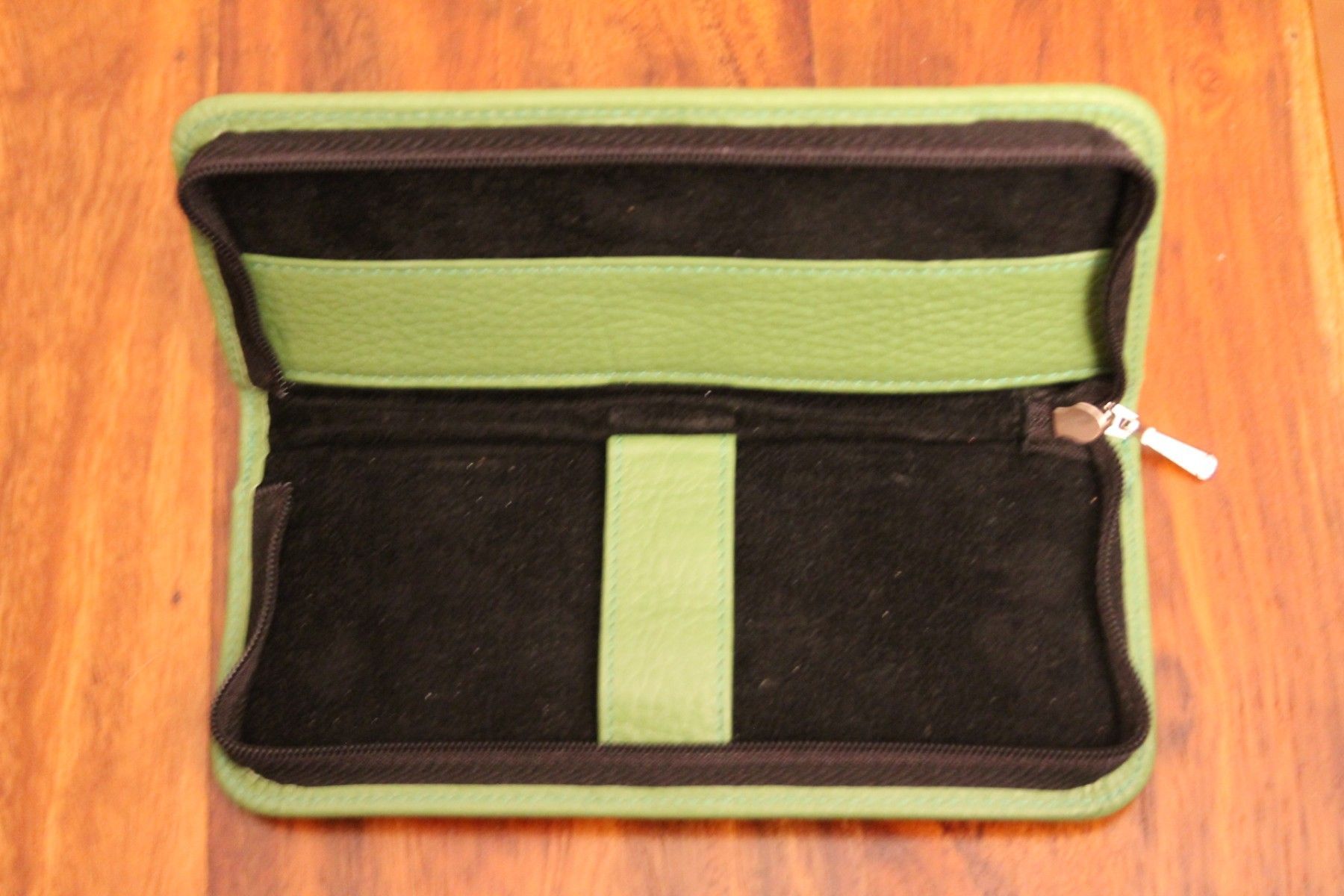 Mäppchen für 3 Schreibgeräte; Etui für 3 Schreibgeräte, grün, mit Reißverschluß