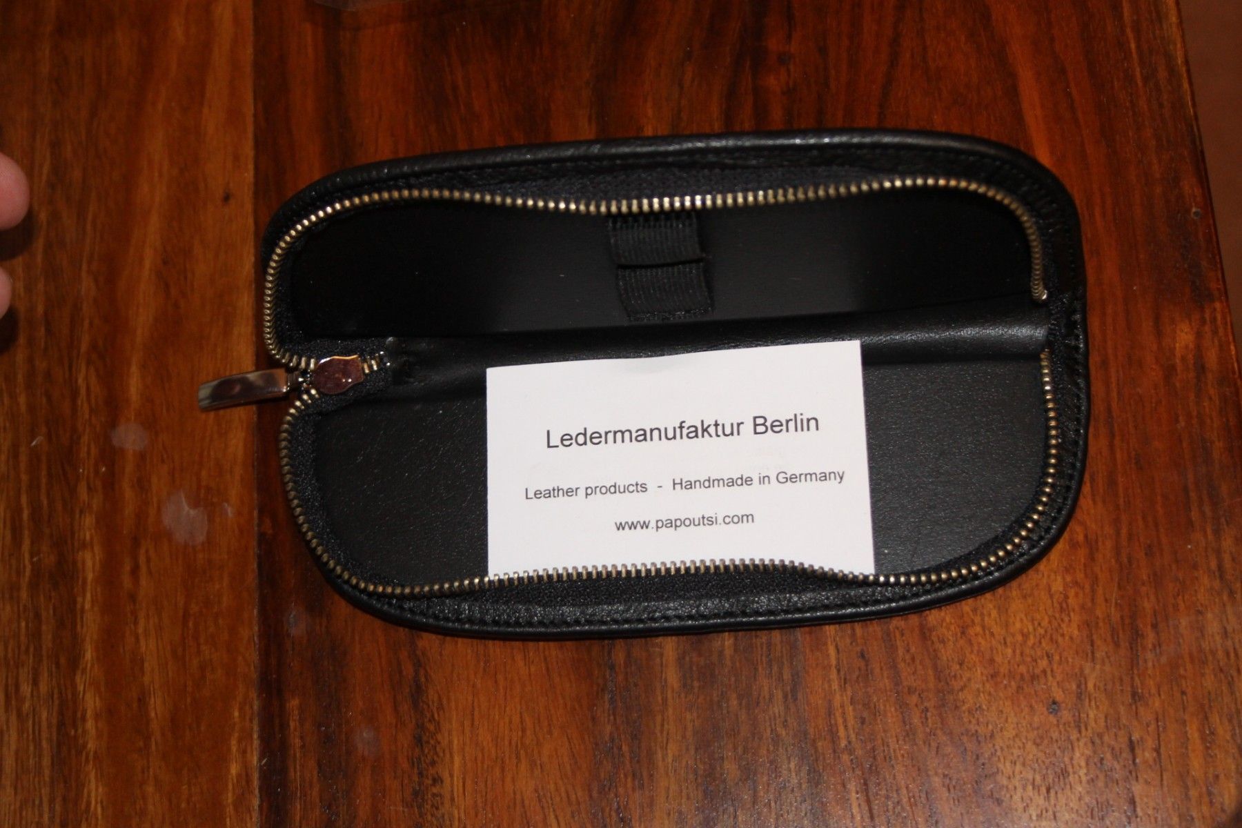 Material Leder. Keine Kennung auf Mäppchen, universell verwendbar.