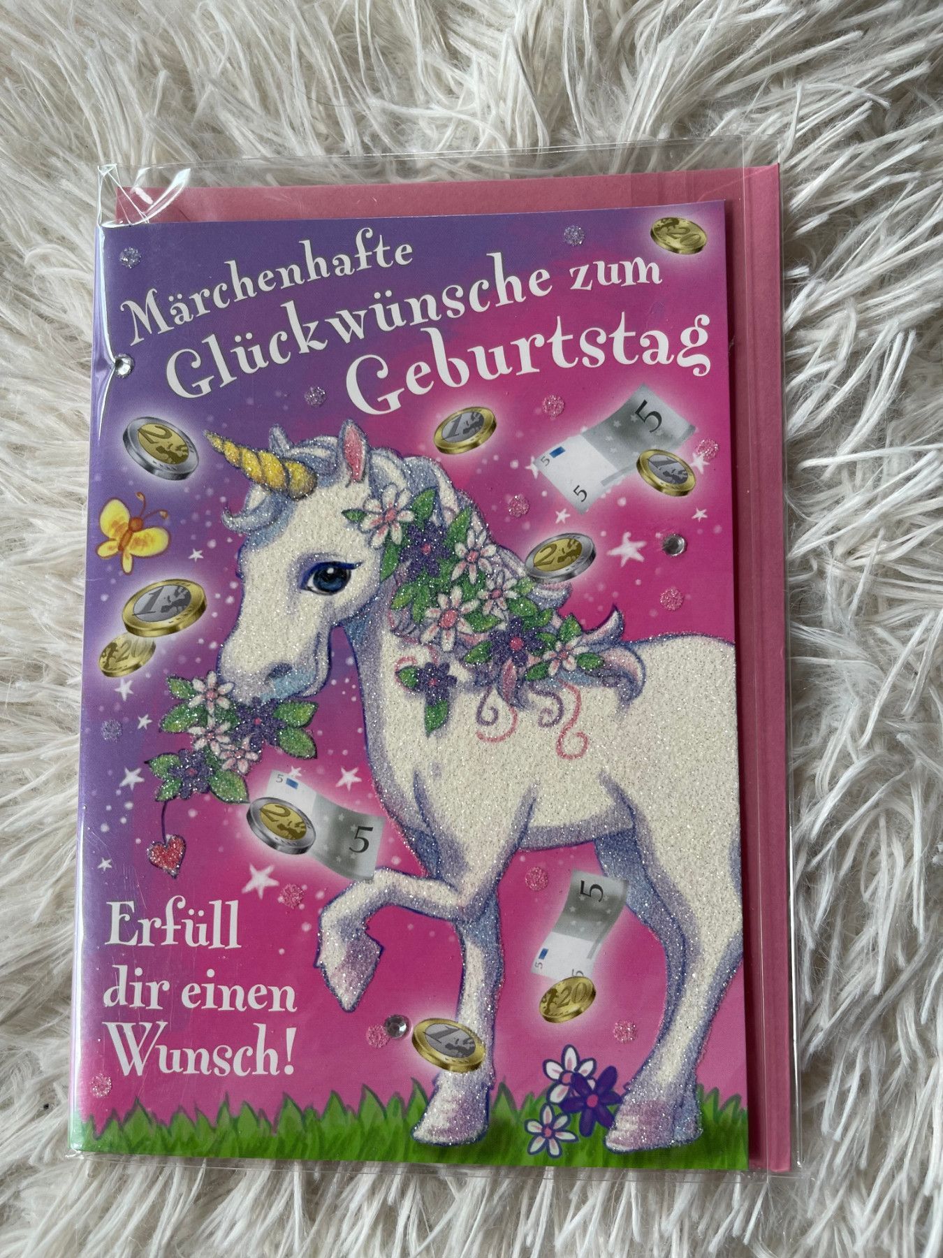 Märchenhafte Glückwünsche/Gutschein zum Geburtag, Einhorn