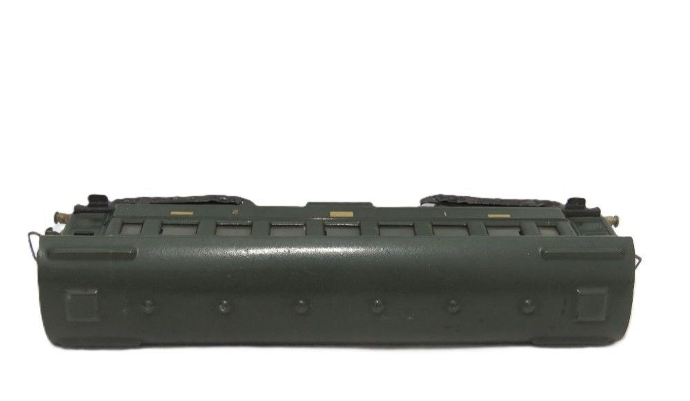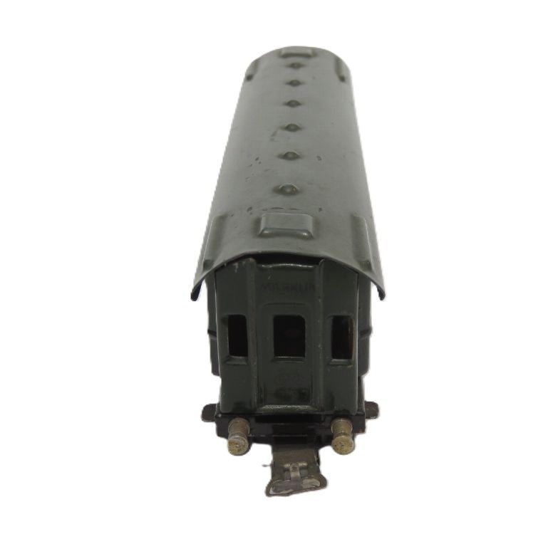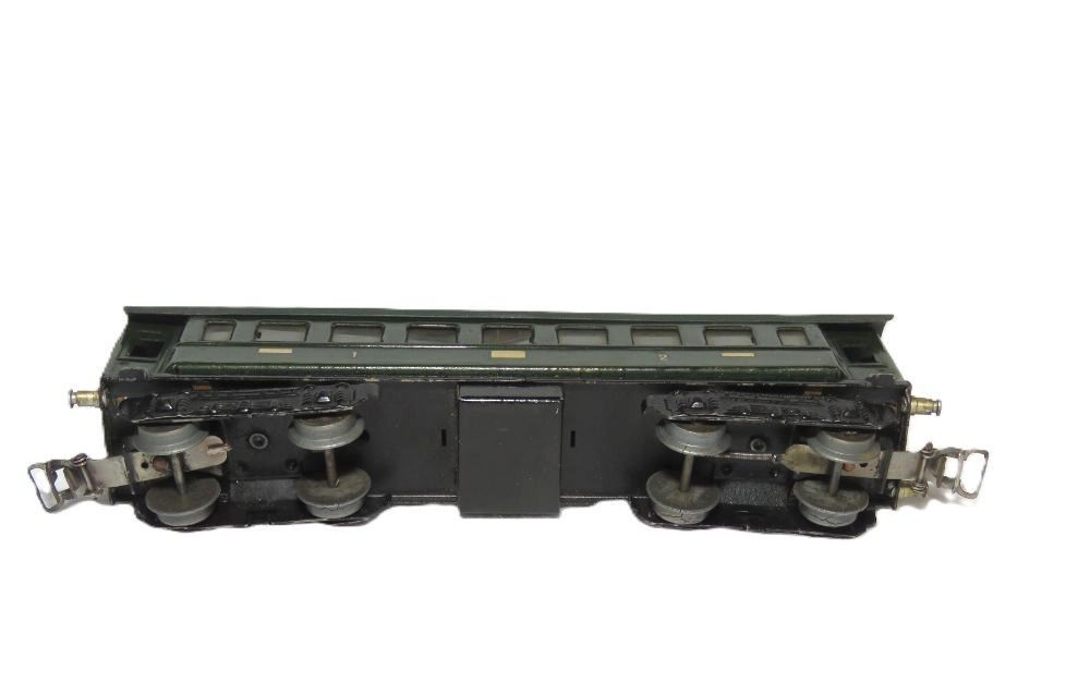 Hersteller: Märklin Artikelnummer: 341 Artikel: D-Zug-Wagen (Stirnseiten mit Kabelöffnungen) Dach Dunkel , Puffer, Kupplung Hell Wagennummer: 341 Klasse: 1. 2. Inneneinrichtung: Nein Bauzeit 1947 - 1949 Farbe: Grün Material: Blech Länge: ca. 17,5 cm NEM-Schacht: Nein Maßstab: 1:87 Originalverpackung