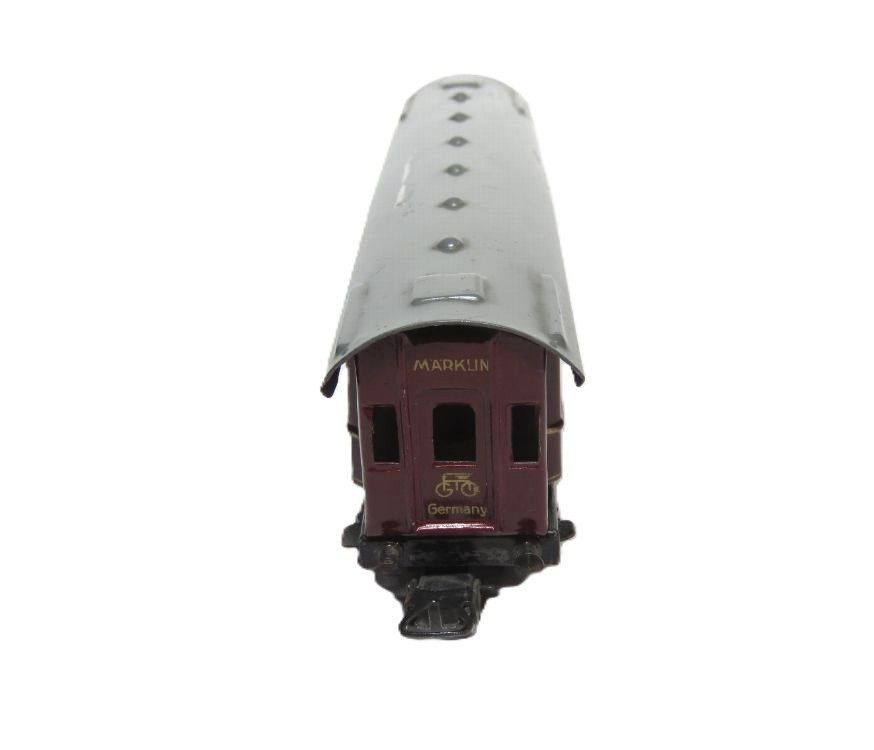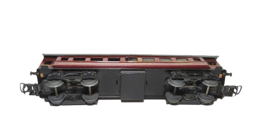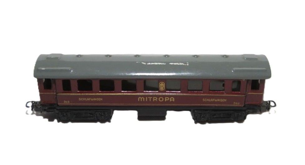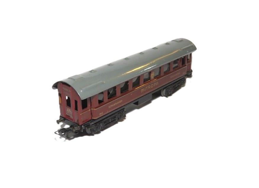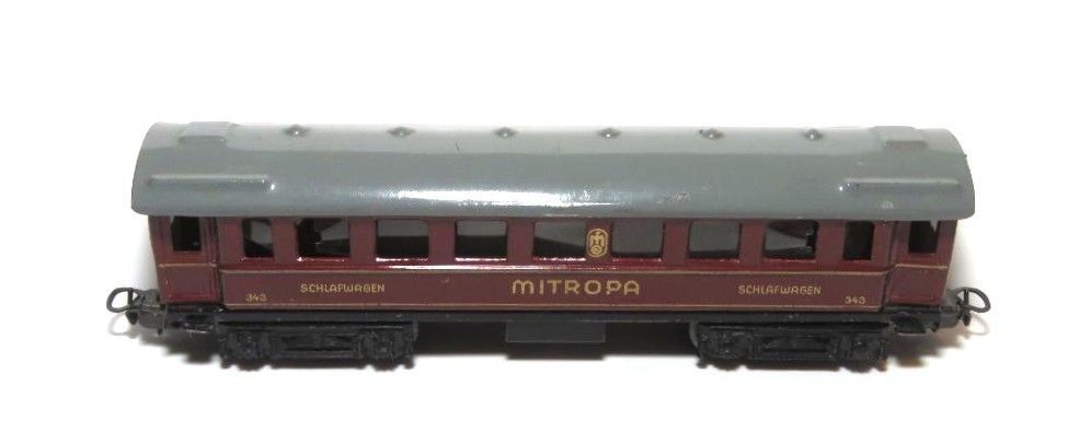 Hersteller: Märklin Artikelnummer: 343 Artikel: Mitropa Schlafwagen (Stirnseiten mit Kabelöffnungen) Dach Hell, Puffer Dunkel Wagennummer: 343 Inneneinrichtung: Nein Farbe: Weinrot Material: Blech Länge: 175 mm NEM-Schacht: Nein Maßstab: 1:87 Originalverpackung: Nein - Ersatzverpackung Die Fotos sin