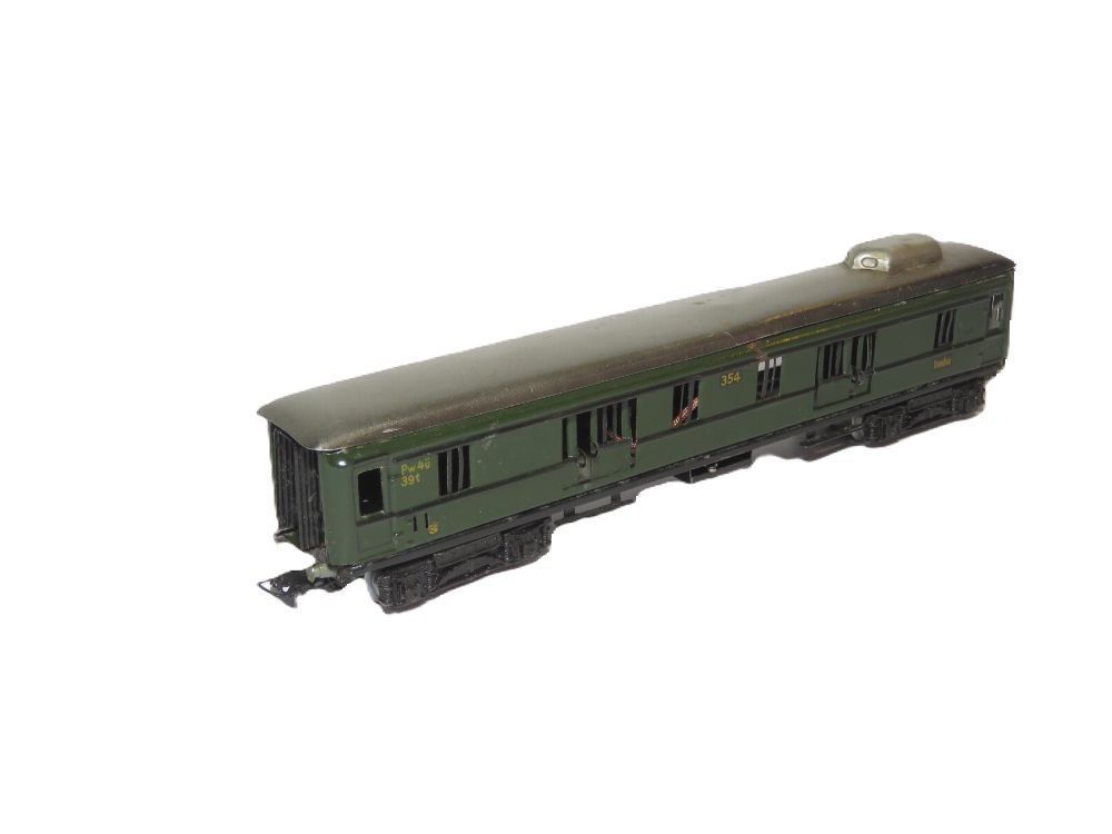 Hersteller: Märklin Artikelnummer: 354 B Artikel: Gepäckwagen mit Innenbeleuchtung und ein aus Schwalter. Maßstab: 1:87 Anmerkung: Das Dach ist verbeult. Originalverpackung: Nein Die Fotos sind Teil der Artikelbeschreibung. Der Markenname ist rechtlich geschützt und wird lediglich genannt, weil er B