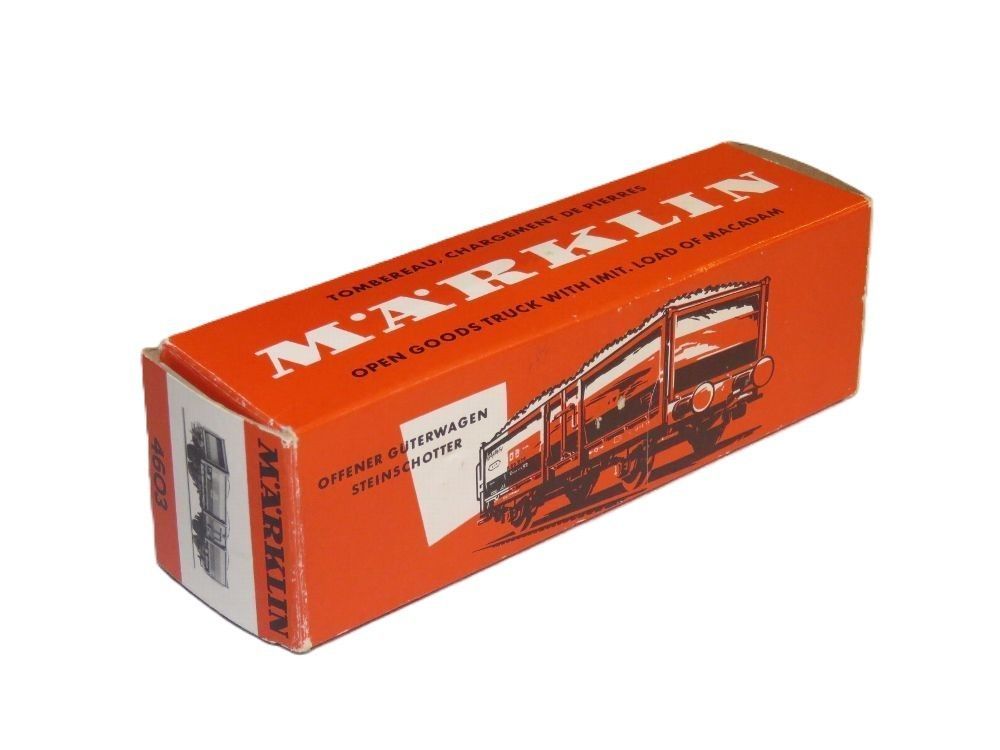 Hersteller: Märklin Artikelnummer: 4603 Artikel: Offener Güterwagen Steinschotter Wagennummer: 86222 DB Länge: 115 mm Anmerkung: Die Ladefläche hat Lackschäden. NEM Schacht: Nein Bauzeit: 1960 - 1966 Maßstab: 1:87 Originalverpackung: Ja (Da die Verpackung nicht Bestandteil dieses Artikels ist, wird