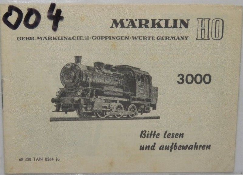Hersteller: Märklin Artikel: Betriebsanleitung Heftnummer: 68 300 TAN 0364 ju Heftseiten: 15 Das Foto ist Teil der Artikelbeschreibung. Der Markenname ist rechtlich geschützt und wird lediglich genannt, weil er Bestandteil der Ware ist und von seiner guten Qualität spricht. Sollten Sie mehrere Artik
