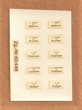 Märklin H0 60446 Decals Zuglaufschilder Schiebebilder-Satz für Personenwagen 4210