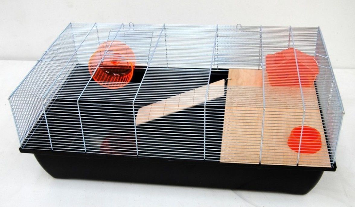 Ollesch Mäusekäfig Hamsterkäfig Nagerkäfig 78x47x30cm schwarz mit Zubehör