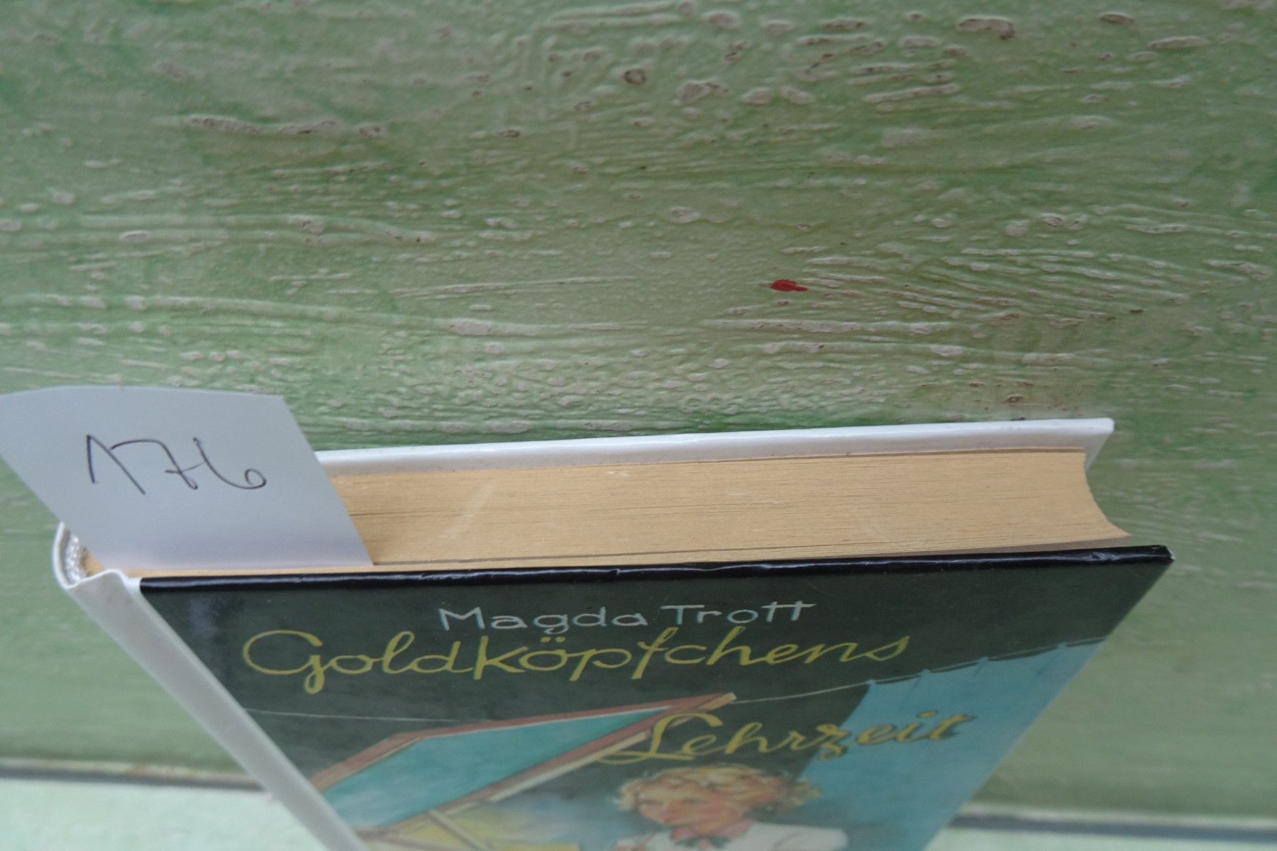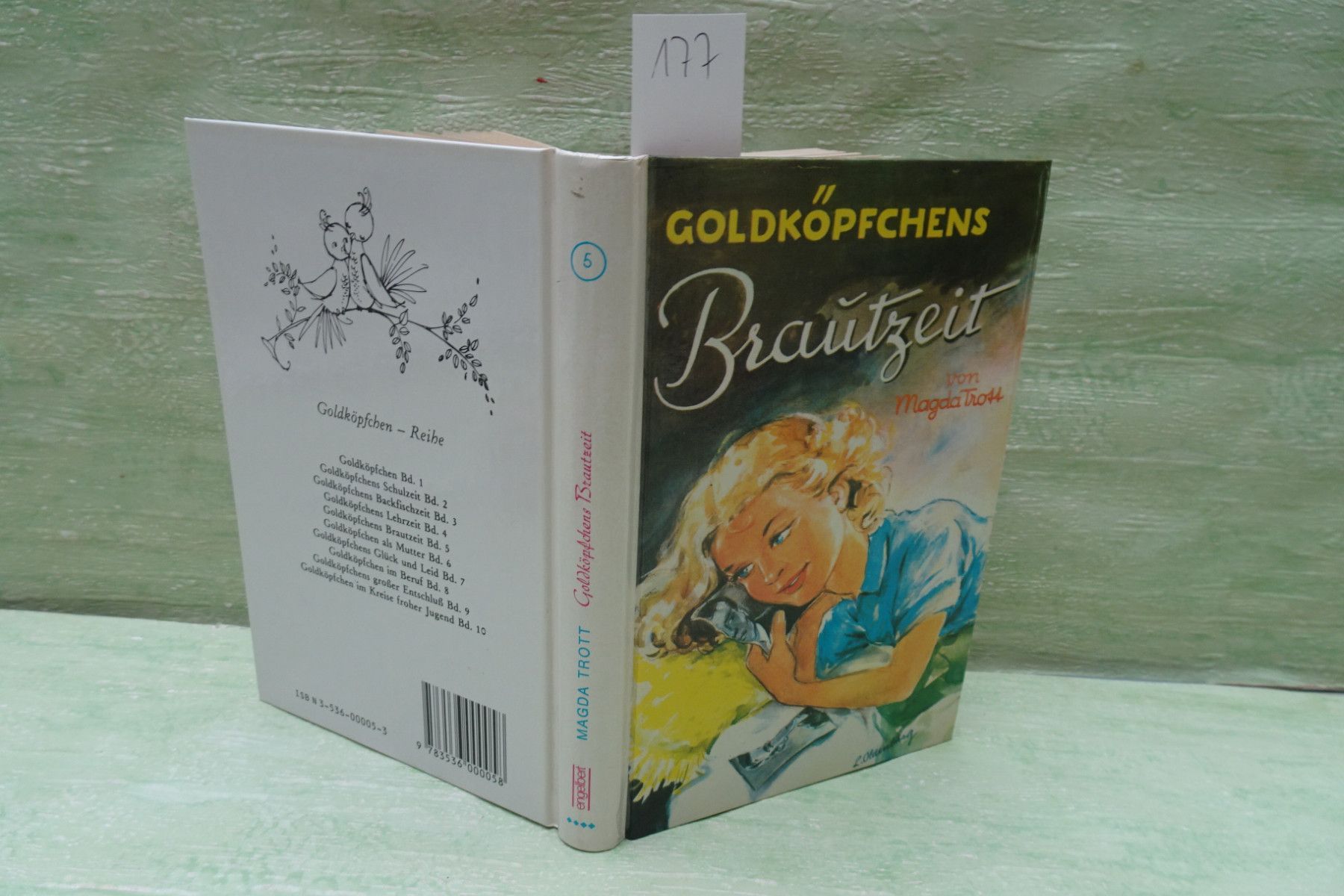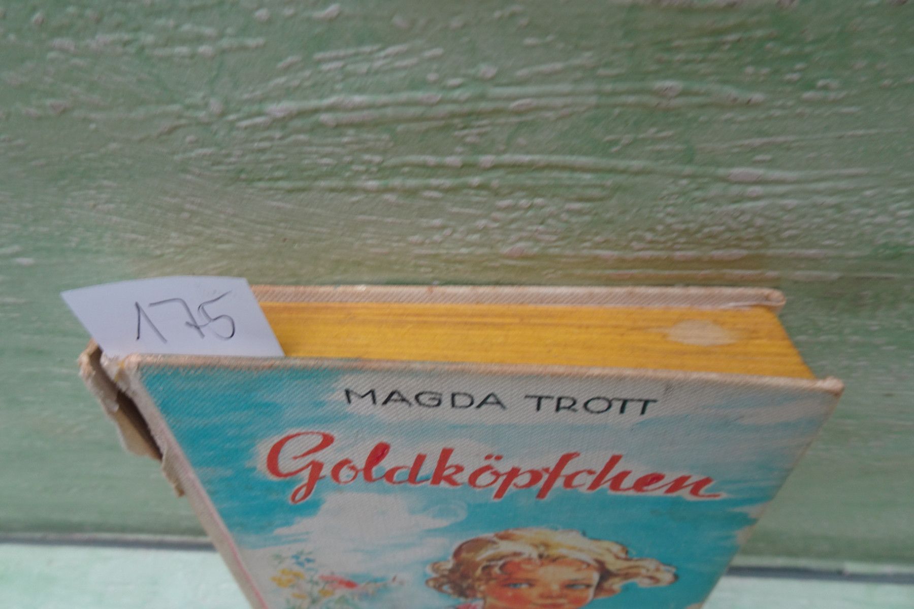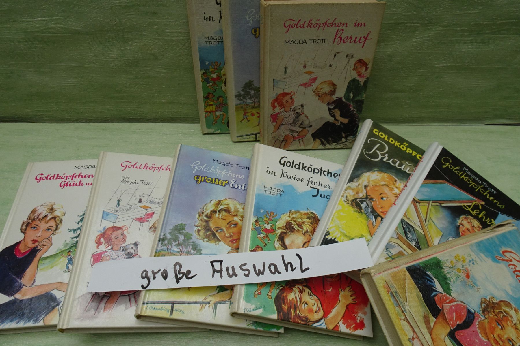 Jugend- & Kinderbücher ... Erinnerungen ..... Magda Trott Goldköpfchen -Auswahl- 173: glatte Ausgaben 7: Glück und Leid 8: im Beruf 9: großer Entschluß 10: im Kreise froher Jugend 174: Leinenbücher 8: im Beruf 9: großer Entschluß 10: im Kreise froher Jugend Abkürzungen: Buchschnitt : BS fleckig