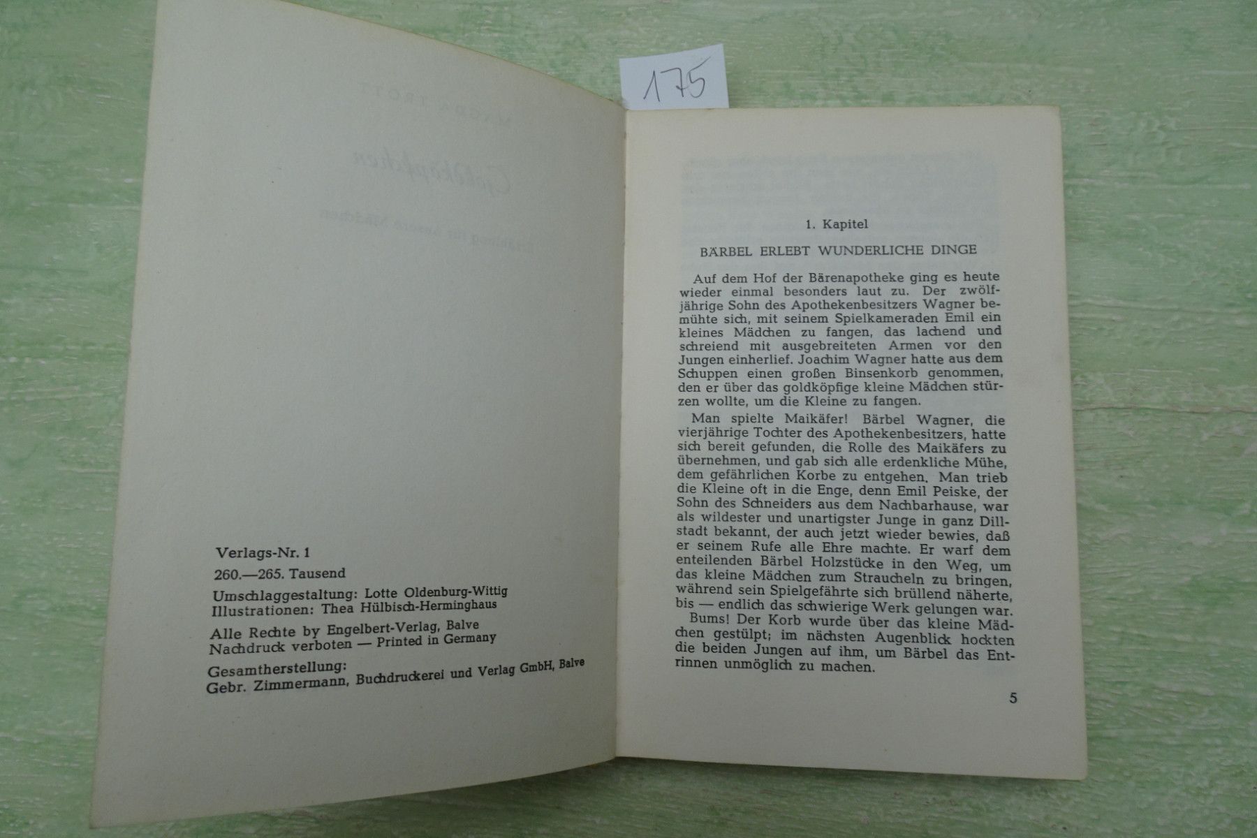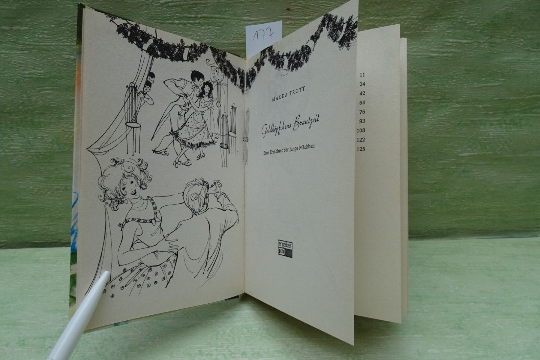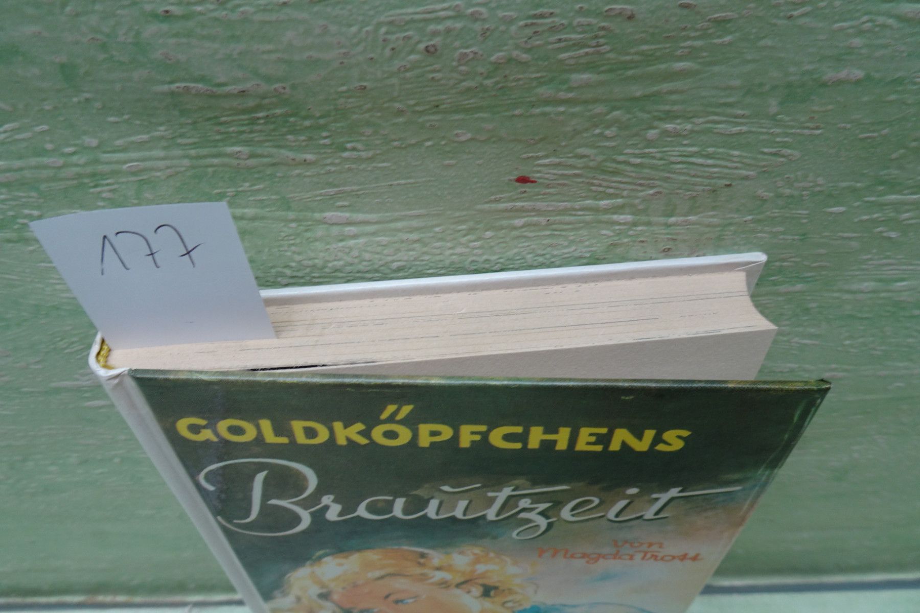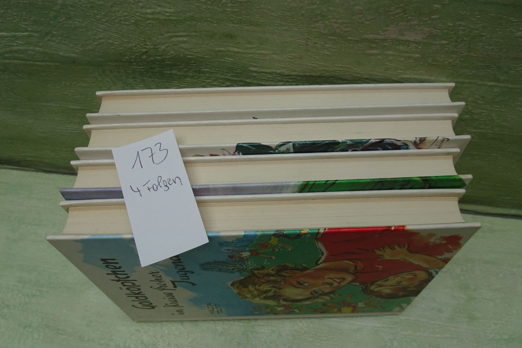 Jugend- & Kinderbücher ... Erinnerungen ..... Magda Trott Goldköpfchen -Auswahl- 173: glatte Ausgaben 7: Glück und Leid 8: im Beruf 9: großer Entschluß 10: im Kreise froher Jugend 174: Leinenbücher 8: im Beruf 9: großer Entschluß 10: im Kreise froher Jugend Abkürzungen: Buchschnitt : BS fleckig