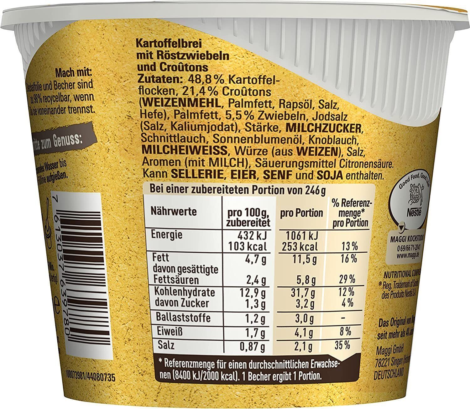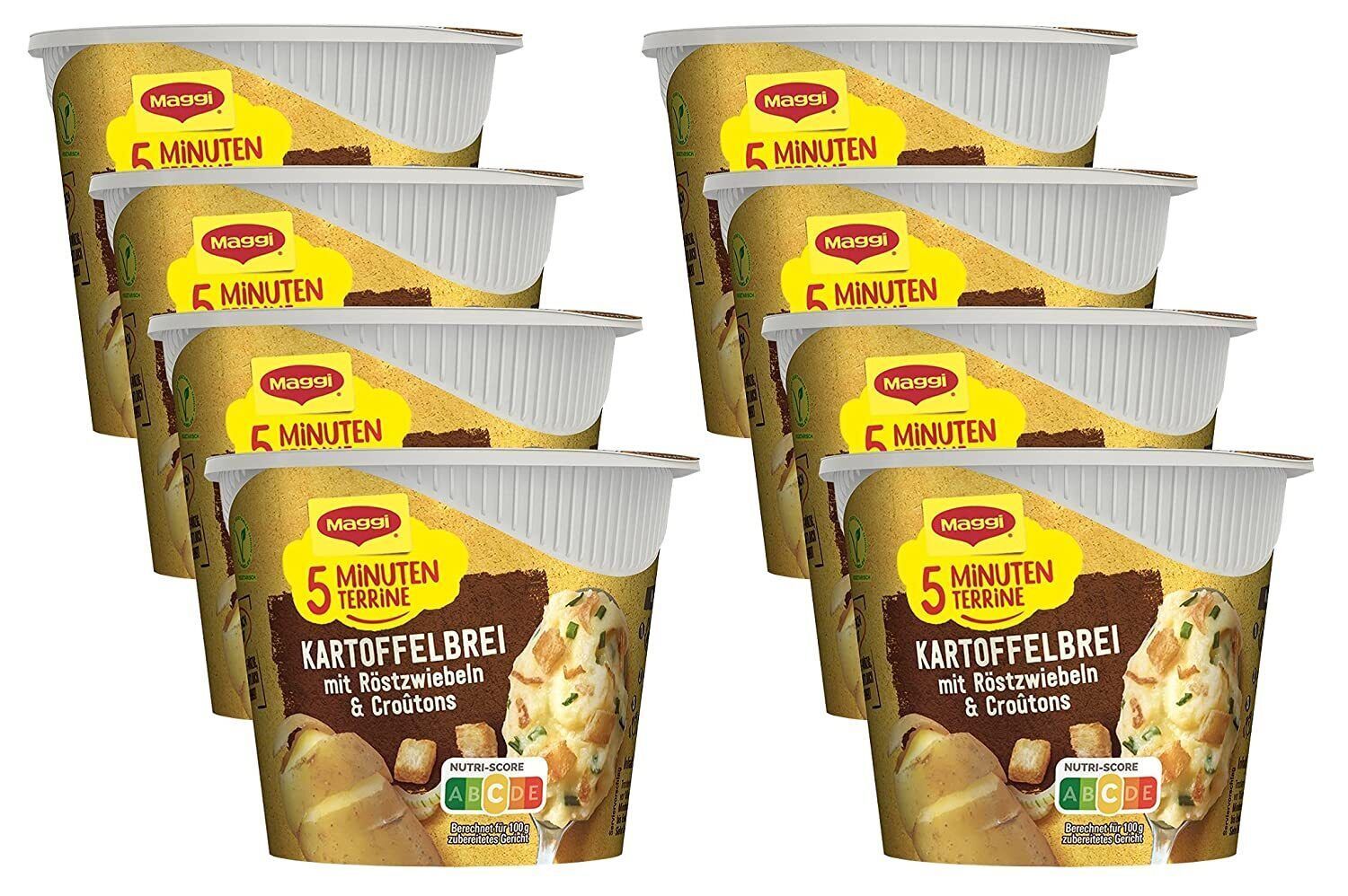 Maggi 5 Minuten Terrine Kartoffelbrei Röstzwiebeln Fertiggericht Péree 8 x 56g