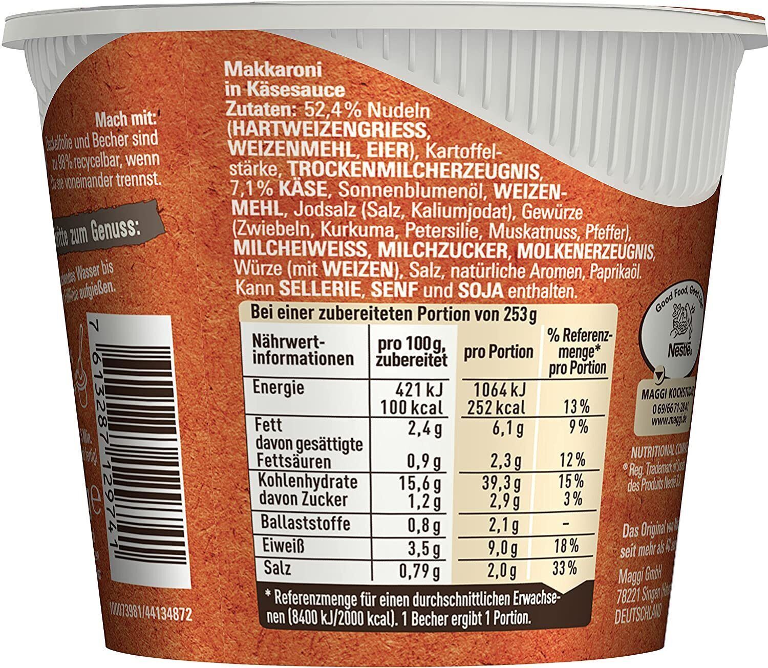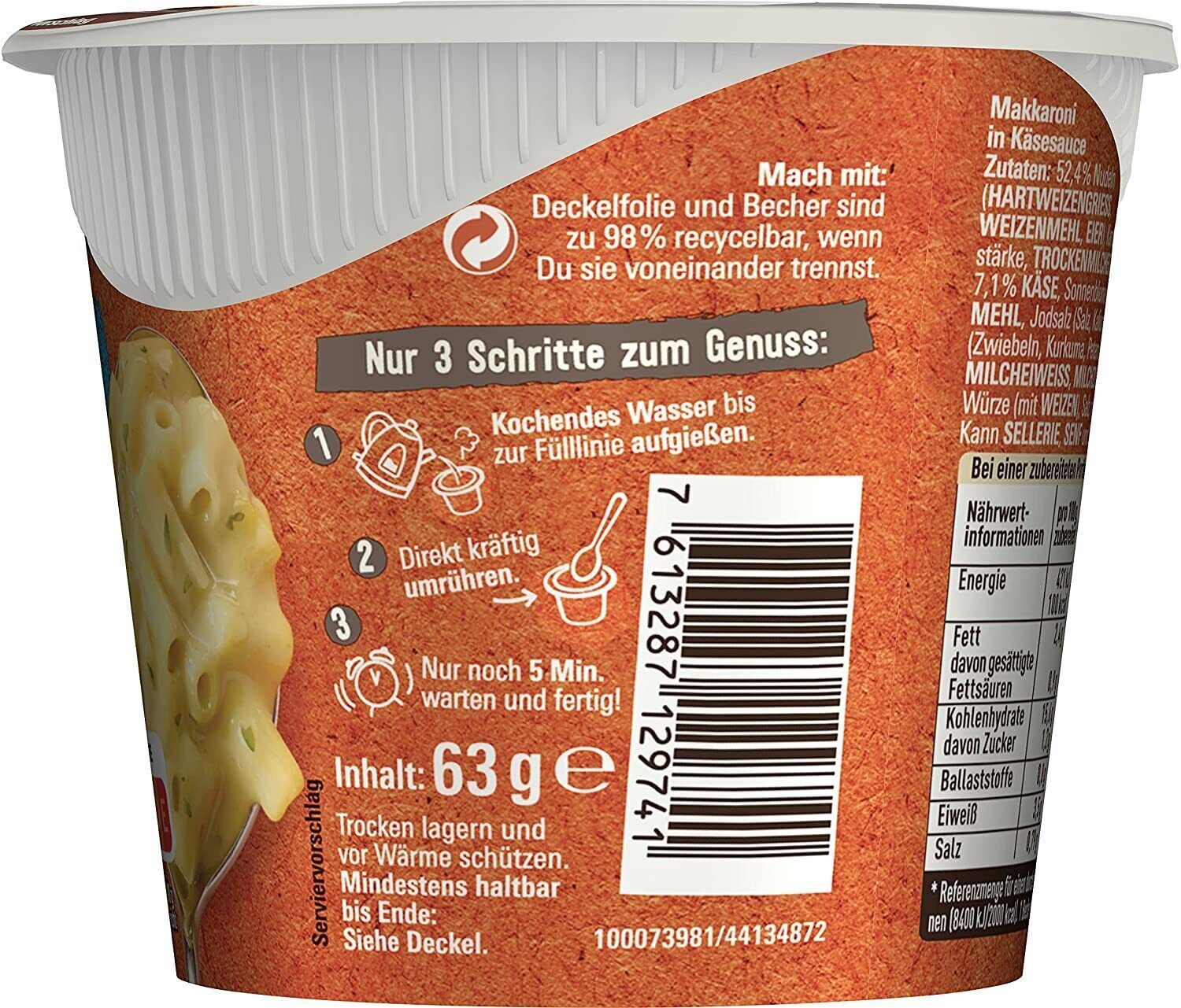 Maggi 5 Minuten Terrine Makkaroni Käsesauce Fertiggericht Instant Nudeln 8 x 63g