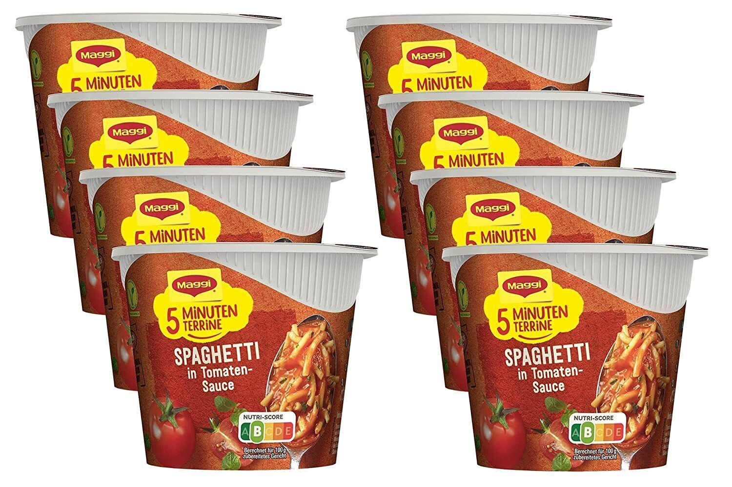 Maggi 5 Minuten Terrine Spaghetti Tomatensauce Fertiggericht Nudeln 8 x 63g