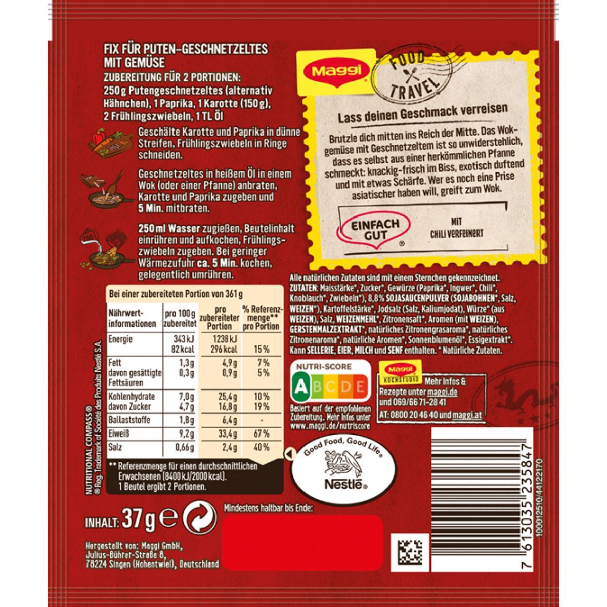 Maggi Food Travel Fix für Puten Wok Geschnetzeltes Asia Pfanne 37g
