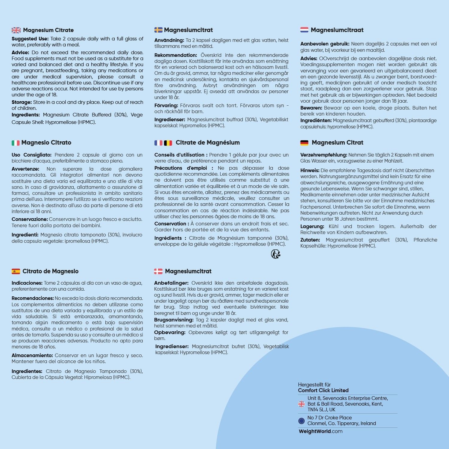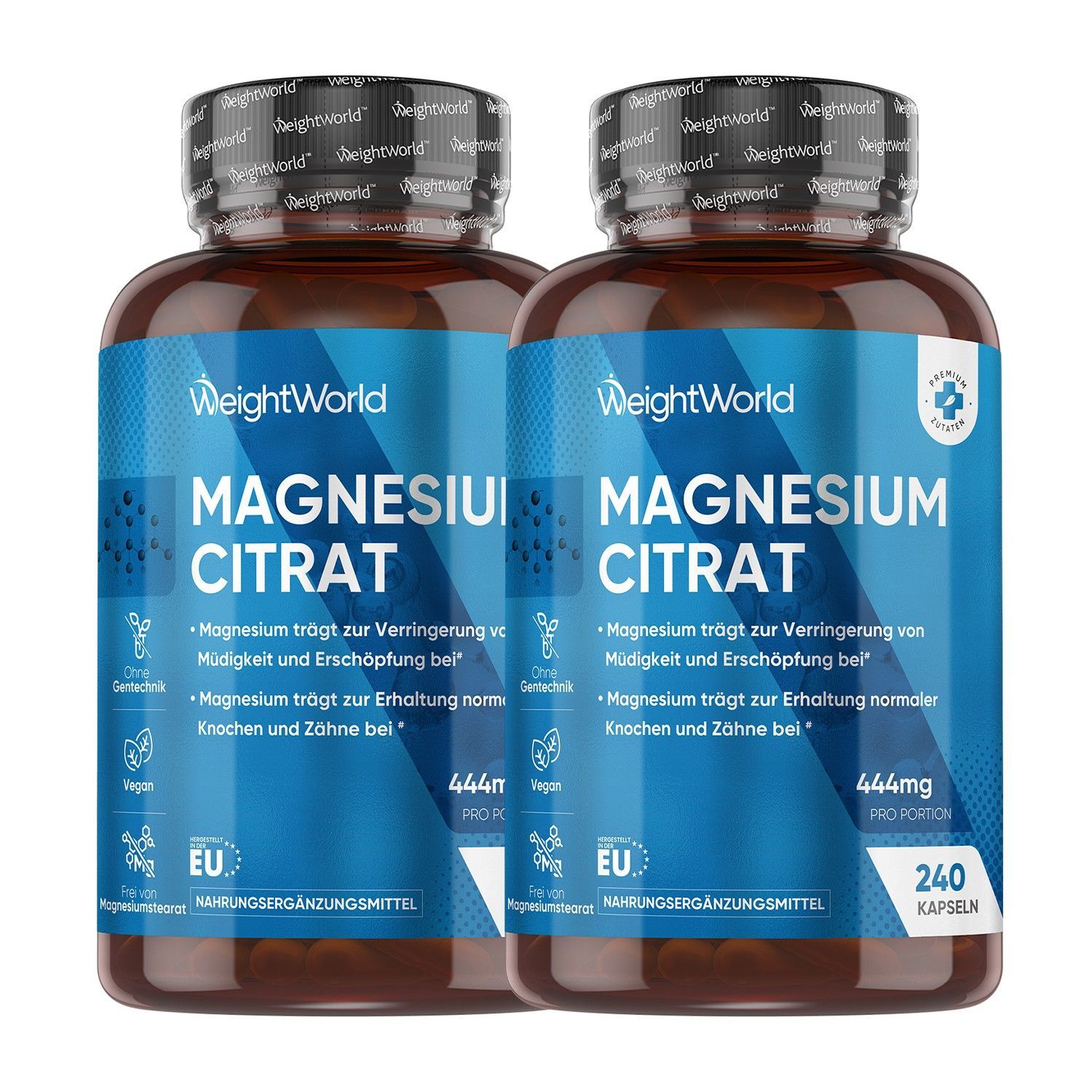 Magnesiumcitrat - 240 vegane Kapseln - 2 Flaschen - WeightWorld