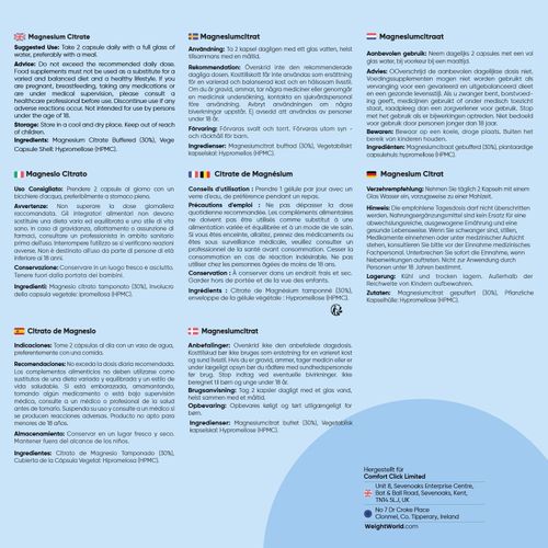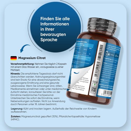 Magnesiumcitrat - 240 vegane Kapseln - 440mg Elementares Magnesium pro Portion