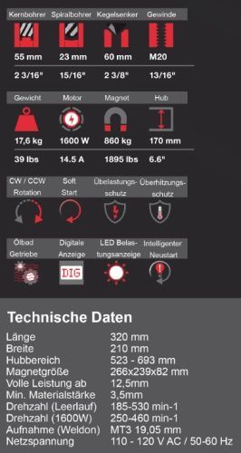 Magnetbohrmaschine TUBE ø12-55mm z.B. für Rohre Kernbohrer bis ø60mm 1600W Magnet