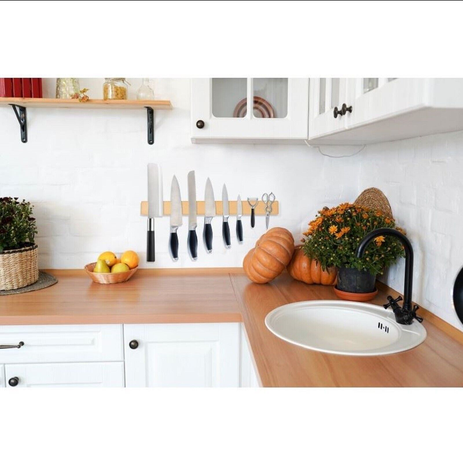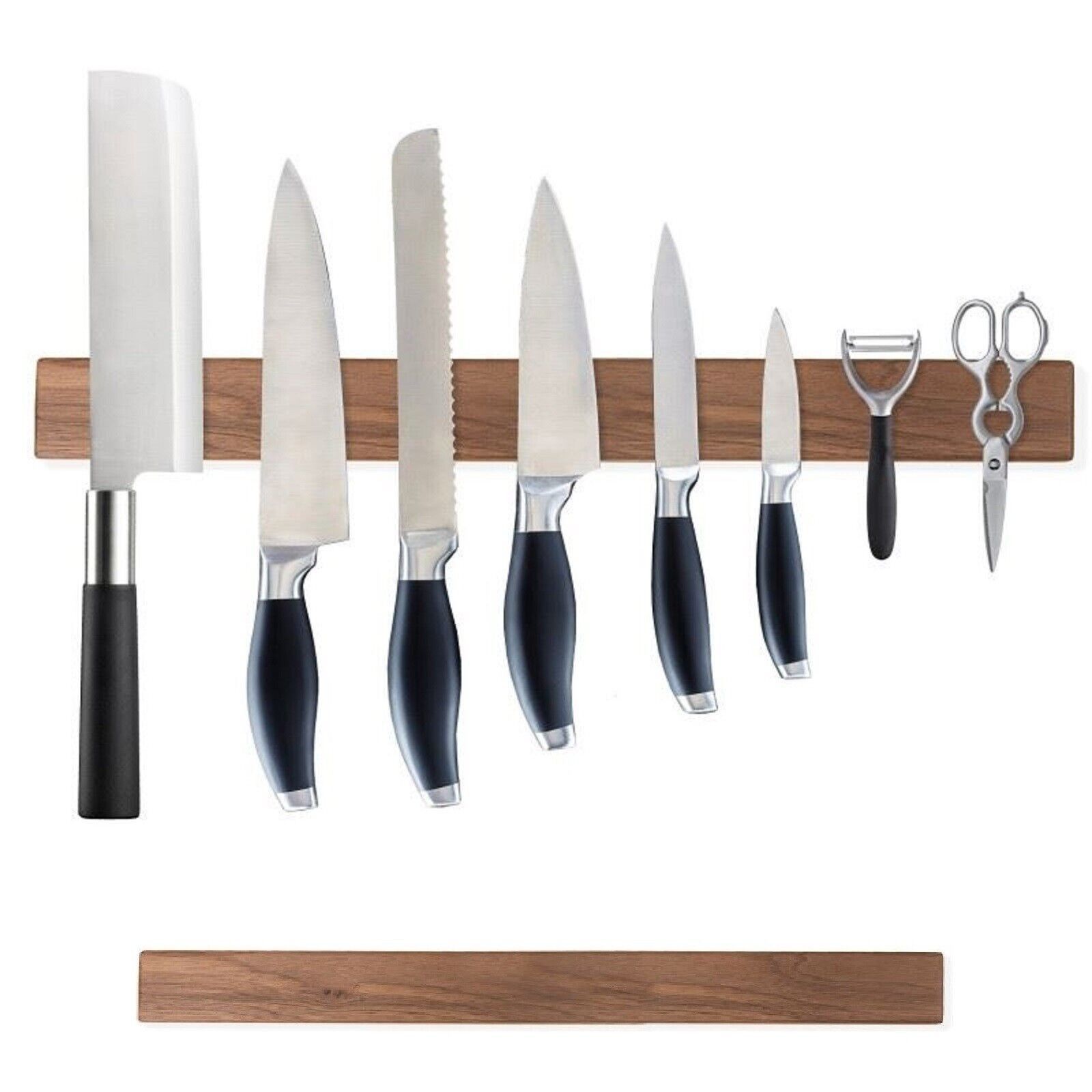 QLS Magnetleiste Messerhalter für Messer Utensilien Messerleiste 35 cm Magnet Holz 10909