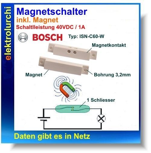 Bosch Magnetschalter Bosch Typ: ISN-C60-W,40VDC/1A, Türkontakt, Reedschalter 1St