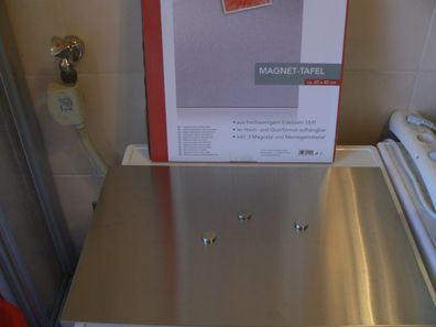 • 1x Zeller Magnet-Tafel / Magnet-Pinnwand aus Edelstahl (60x40cm) + 3 Magnete