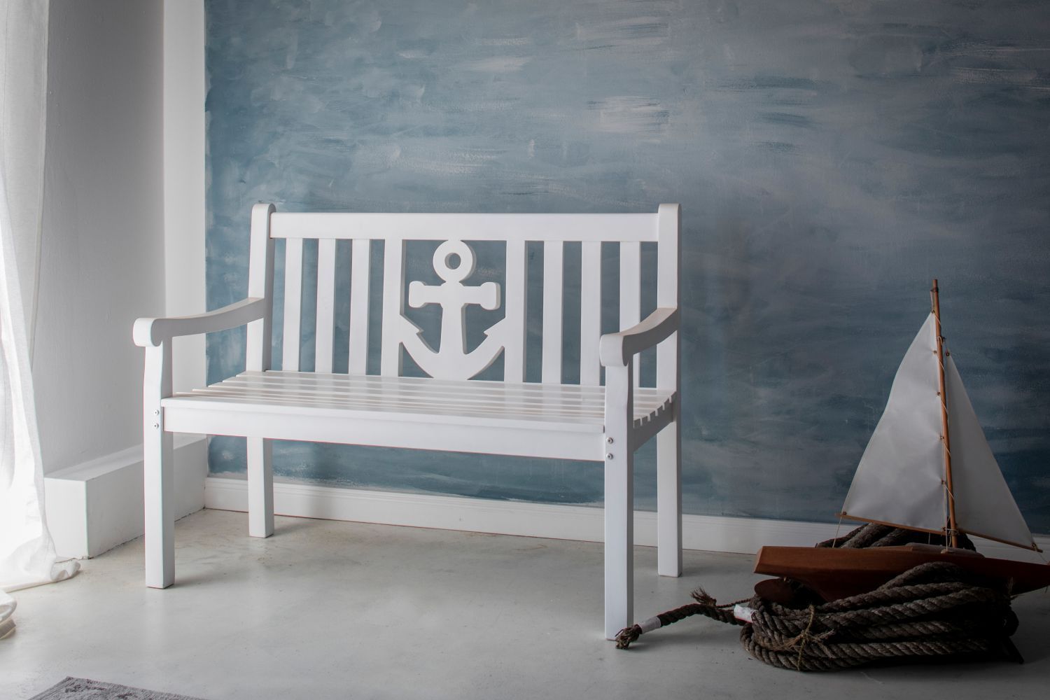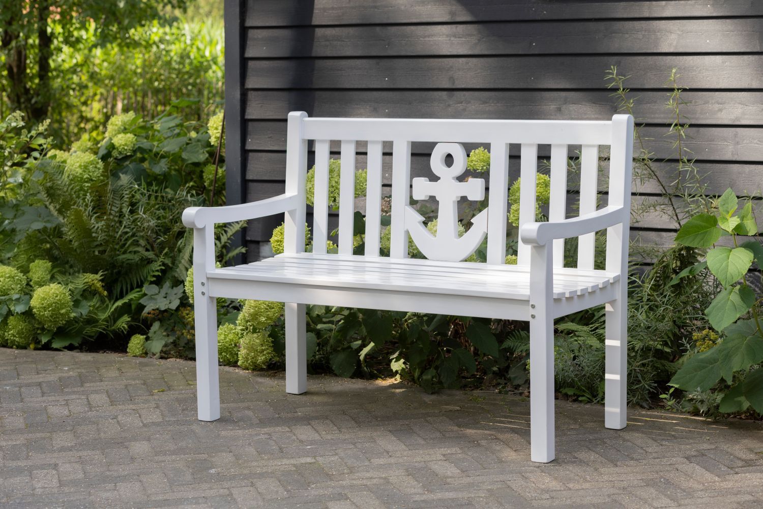 Mahagoni Gartenbank - bene living - Anker 120 cm - weiß