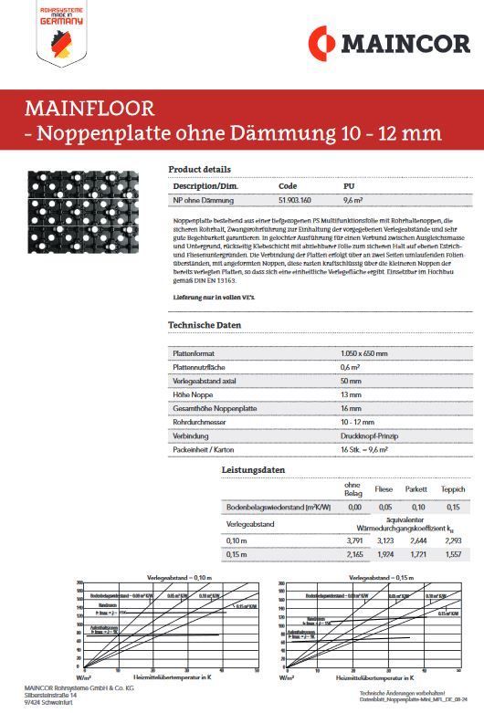 Mainfloor MFL Noppenplatte ohne Dämmung 10 - 12 mm Renovierung Fußbodenheizung