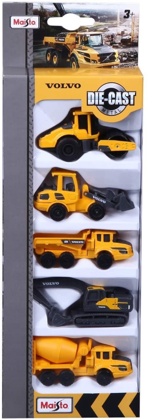 Maisto Maisto 12375 - Volvo Baufahrzeuge 5er-Set (8cm) Bagger Betonmischer Walze