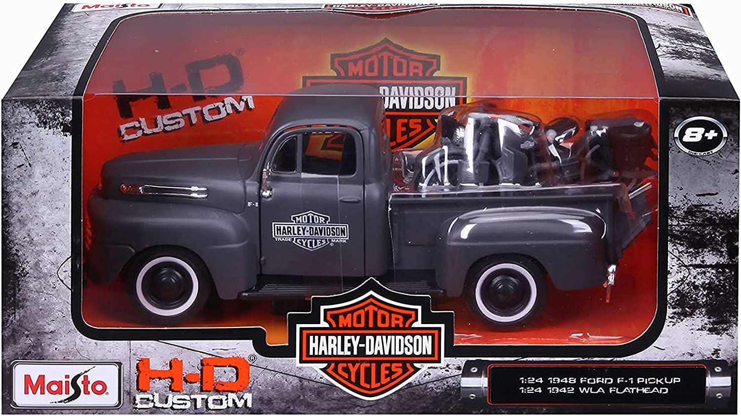 Maisto Maisto Ford F1 Pick-Up '48 + Harley WLA Flathead '42 schwarz Maßstab 1:24 Modell