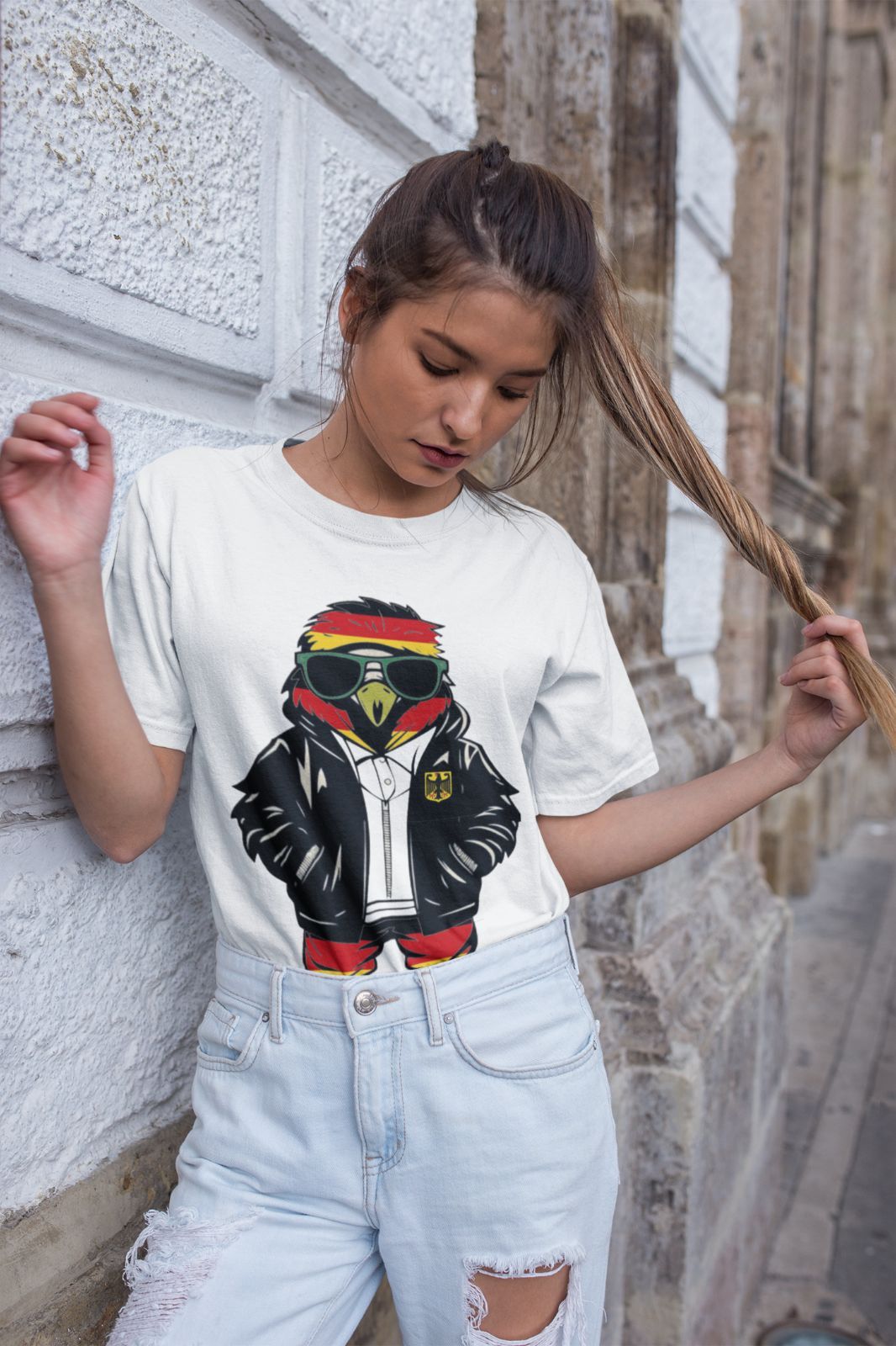 Make Germany Damen T-Shirt – Adler & Deutschland Flagge Zeige deinen Stil und Patriotismus mit diesem Damen-T-Shirt! Mit einem eindrucksvollen Adler-Design, der Deutschland-Flagge und dem Statement Make Germany ist es ein Blickfang für jede Gelegenheit. Material: Hergestellt aus hochwertiger Bau