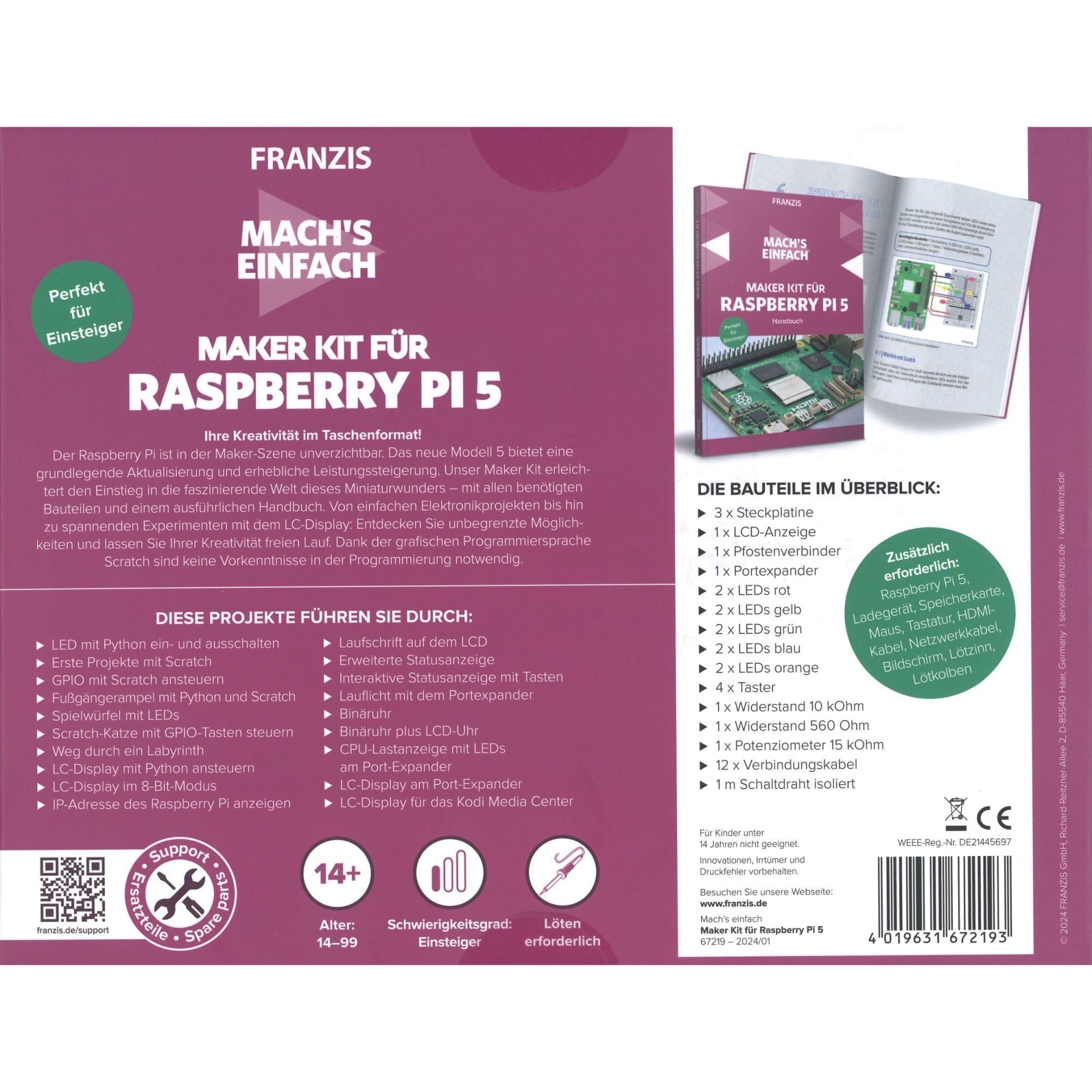 Maker Kit für Raspberry PI5 Bausatz - Perfekt für Einsteiger - Franzis Verlag